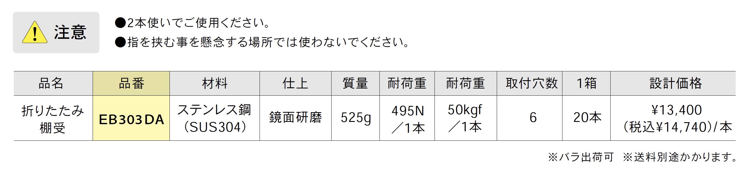 ステンレス鋼製折りたたみ棚受 ダンパー内蔵 PAT