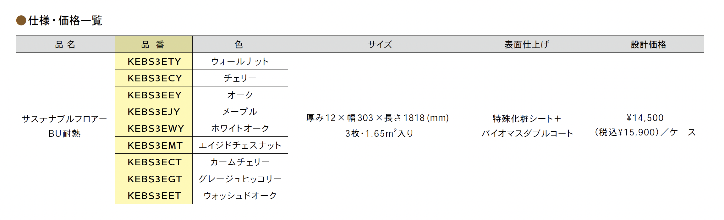 | カラー | TY:ウォールナット柄 CY:チェリー柄 EY:オーク柄 JY:メープル柄 WY:ホワイトオーク柄 MT:エイジドチェスナット柄 CT:カームチェリー柄 GT:グレージュヒッコリー柄 ET:ウォッシュドオーク柄 |