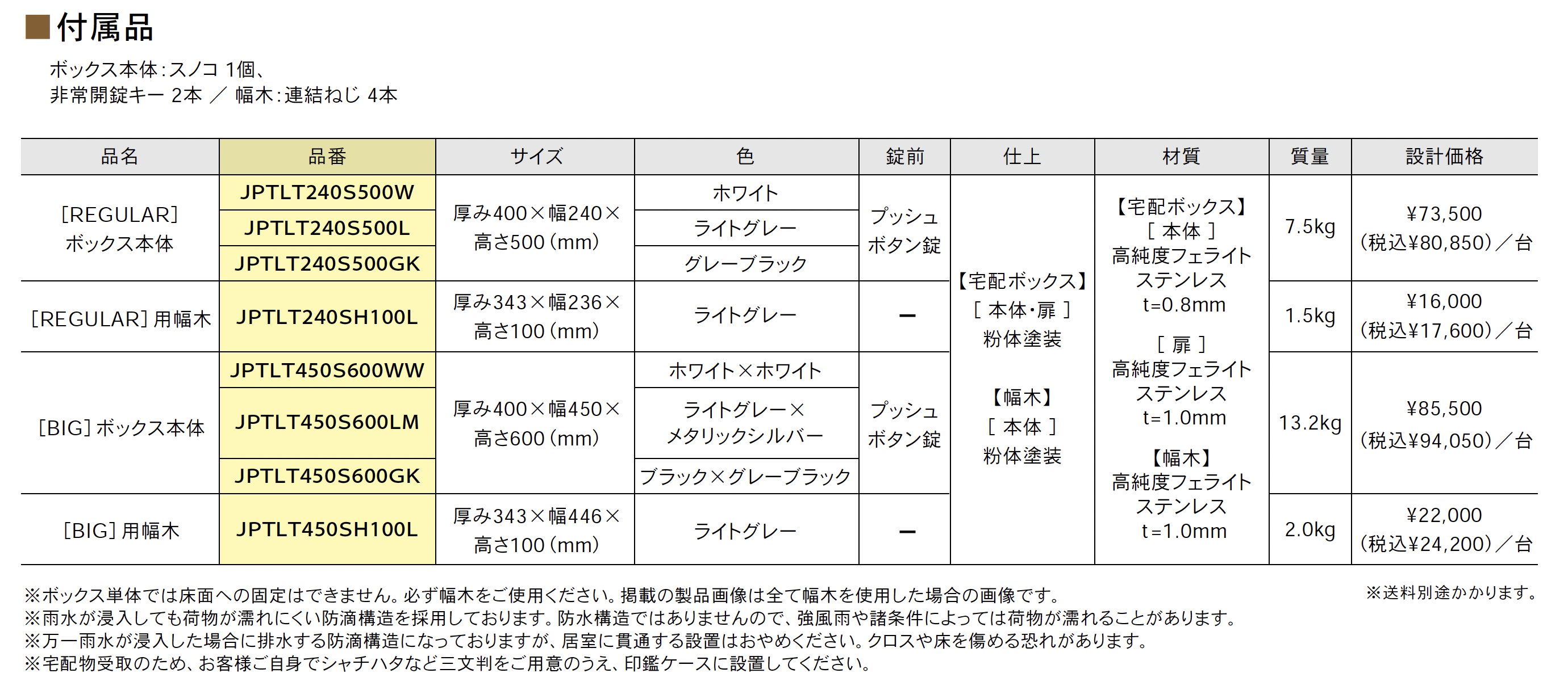 | デザイン | 前入前出タイプ 防滴タイプ |