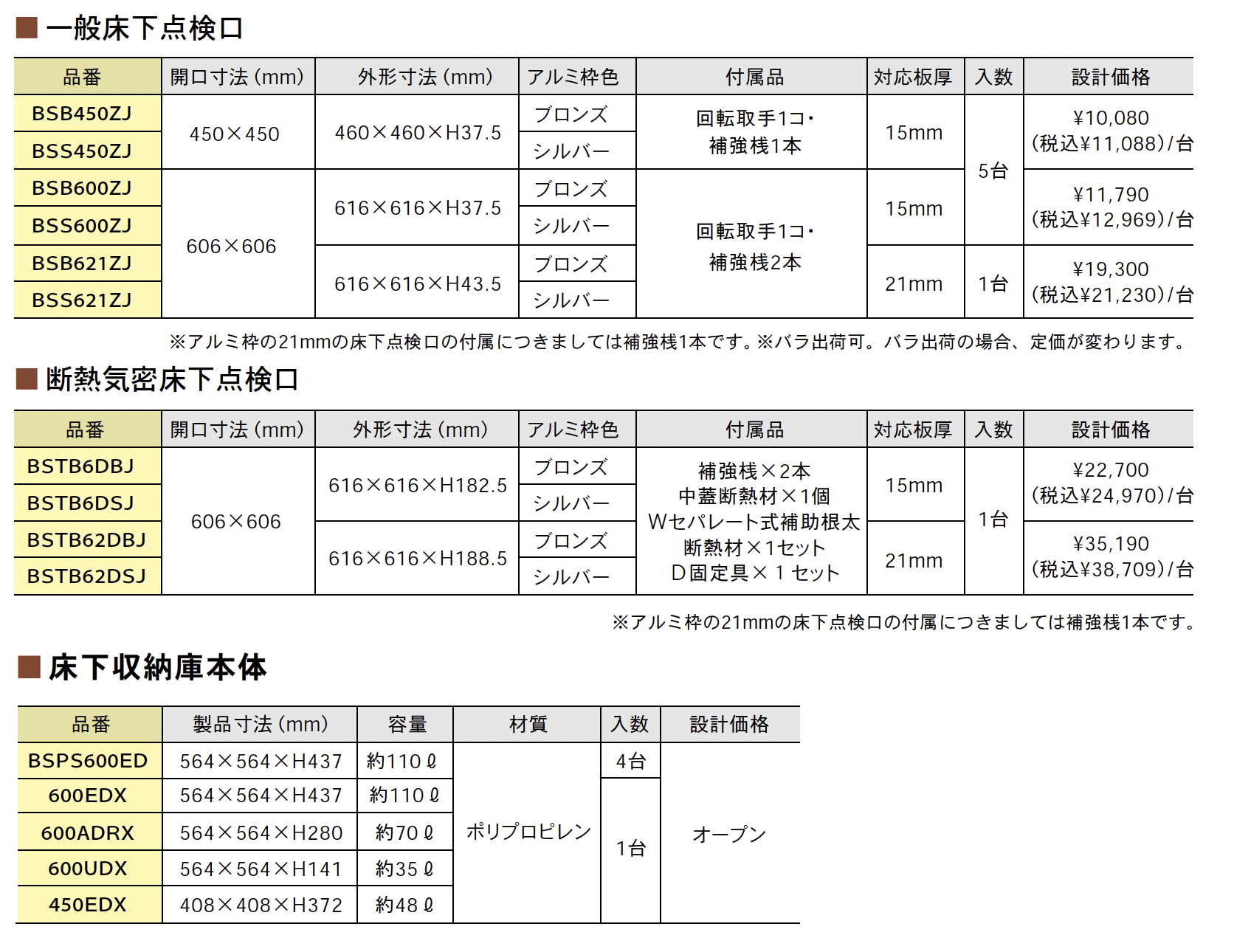 床下収納・収納庫・点検口