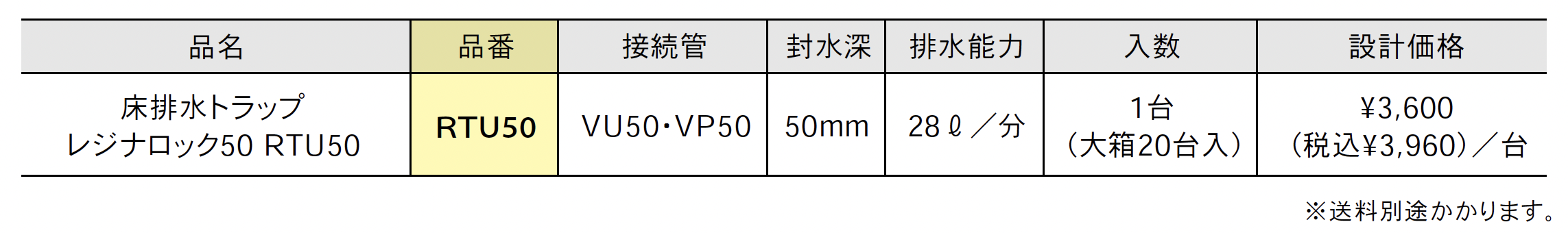 床排水トラップ レジナロック50 RTU50