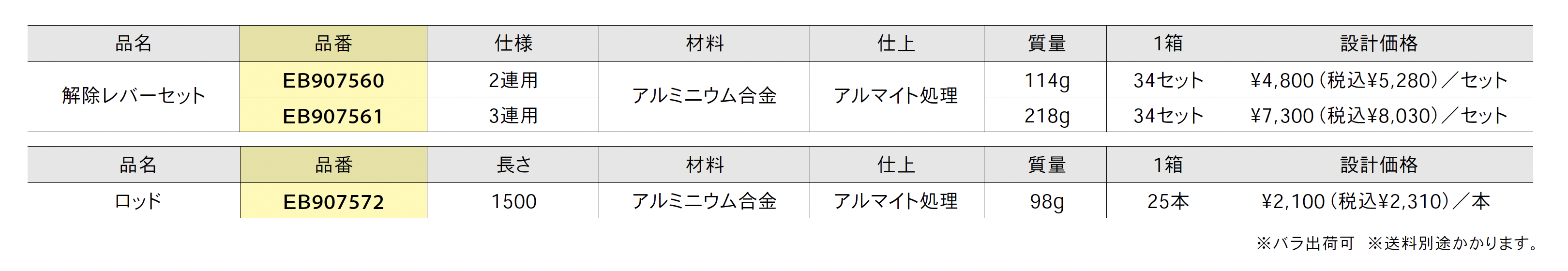 折りたたみ棚受用 一括解除レバーセット 幅広用 PAT