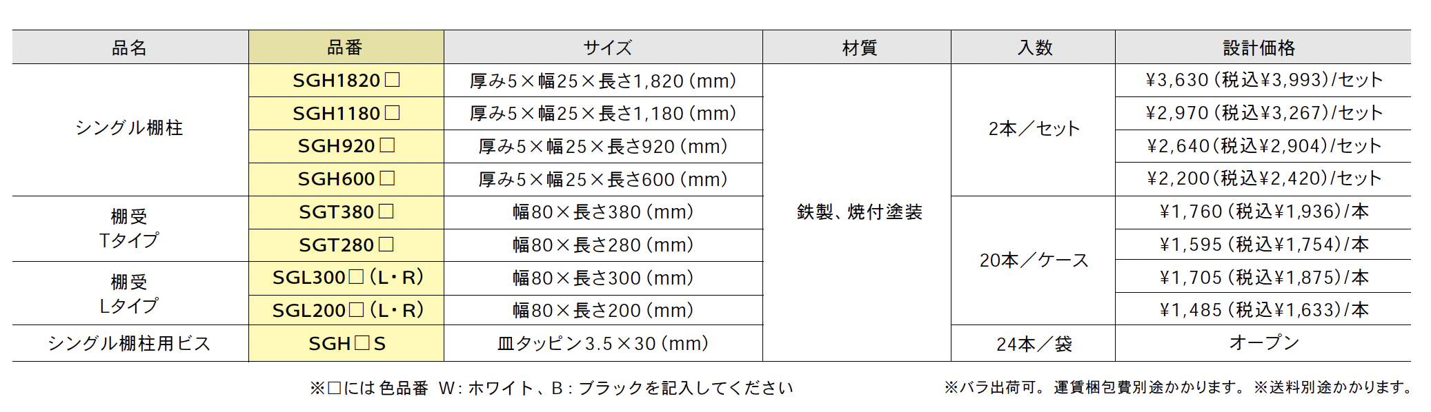 シングル棚柱