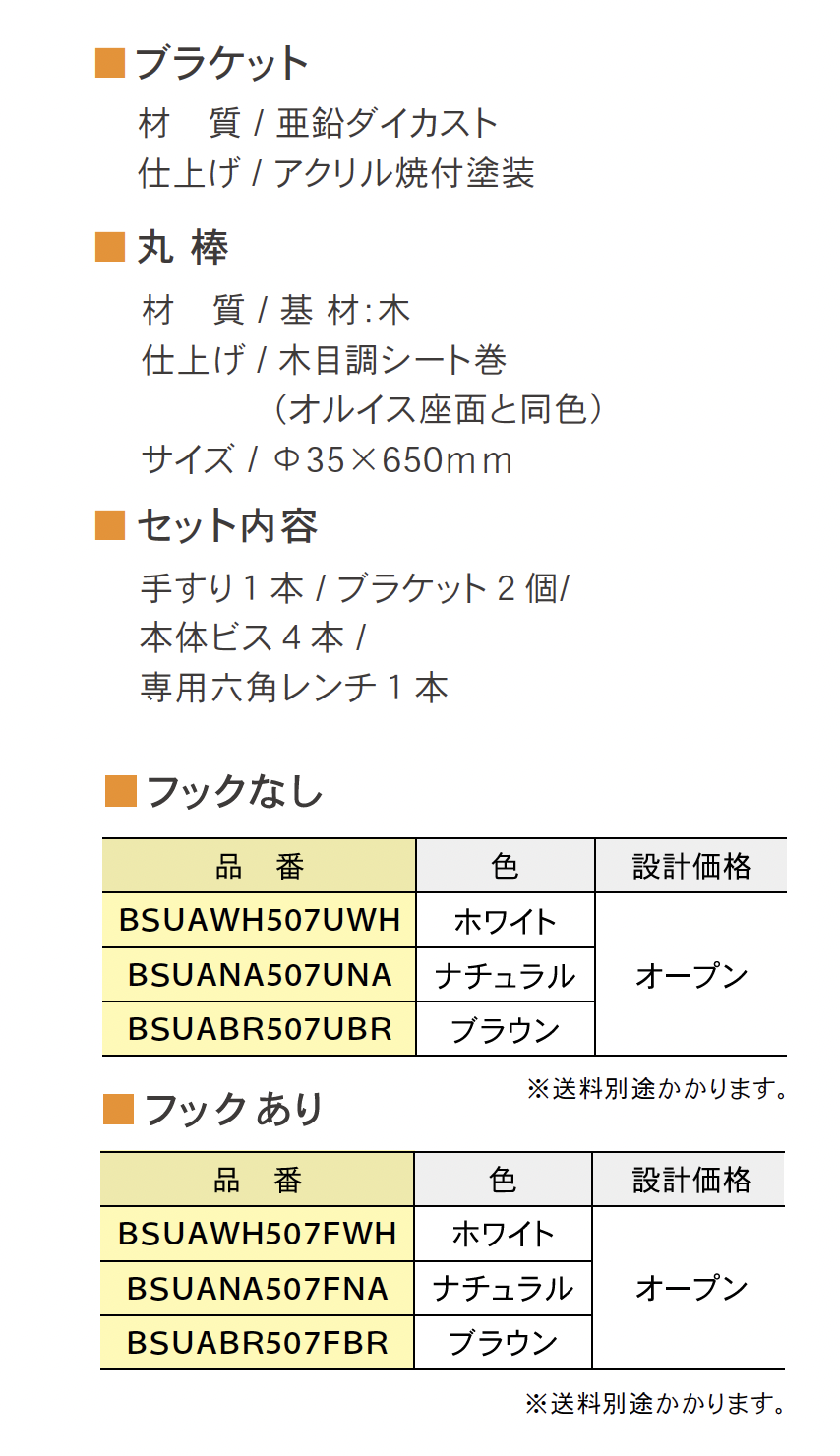 I型手すり フックなし・フックあり
