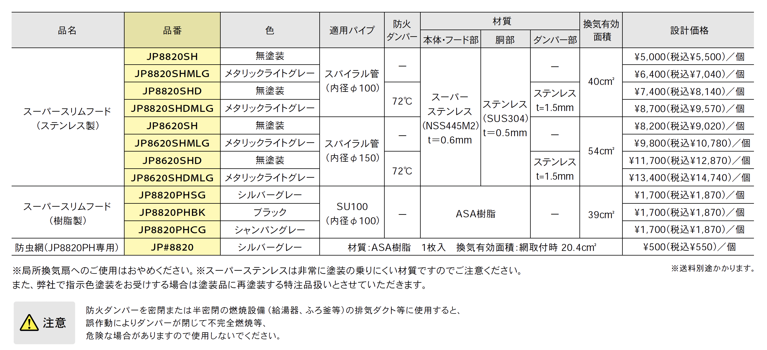 | 材質 | スーパーステンレス(NSS445M2) t=0.6㎜ ステンレス(SUS304) t=0.5㎜ ステンレス t=1.5㎜ ASA樹脂 |