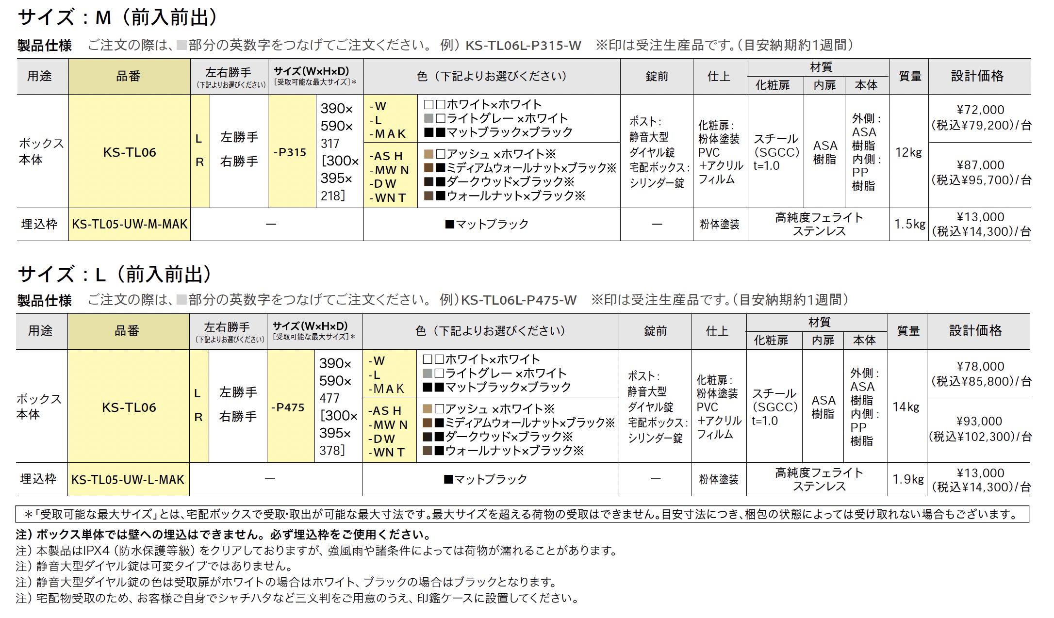 | カラー | W:ホワイト+ホワイト L:ライトグレー+ホワイト MAK:マットブラック+ブラック ASH:アッシュ+ホワイト MWN:ミディアムウォールナット+ブラック DW:ダークウッド+ブラック WNT:ウォールナット+ブラック |