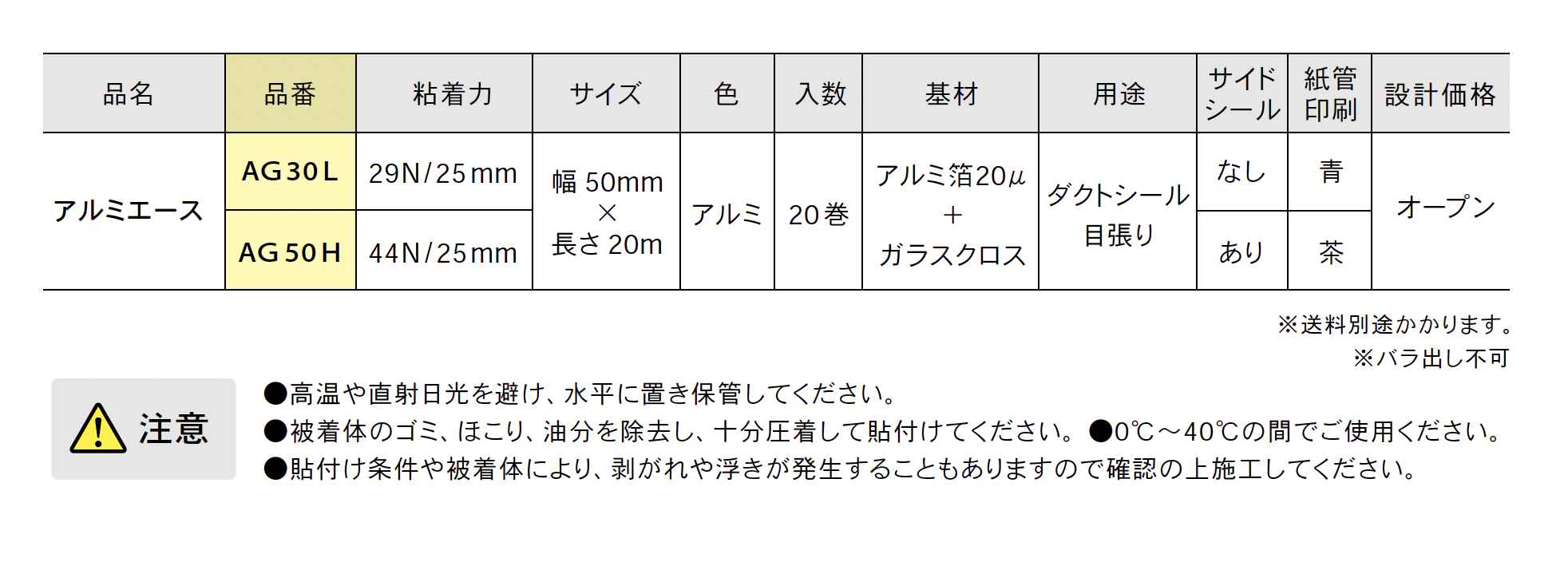 アルミエースAG-30L(強粘着タイプ) AG-50H(超強粘着タイプ)
