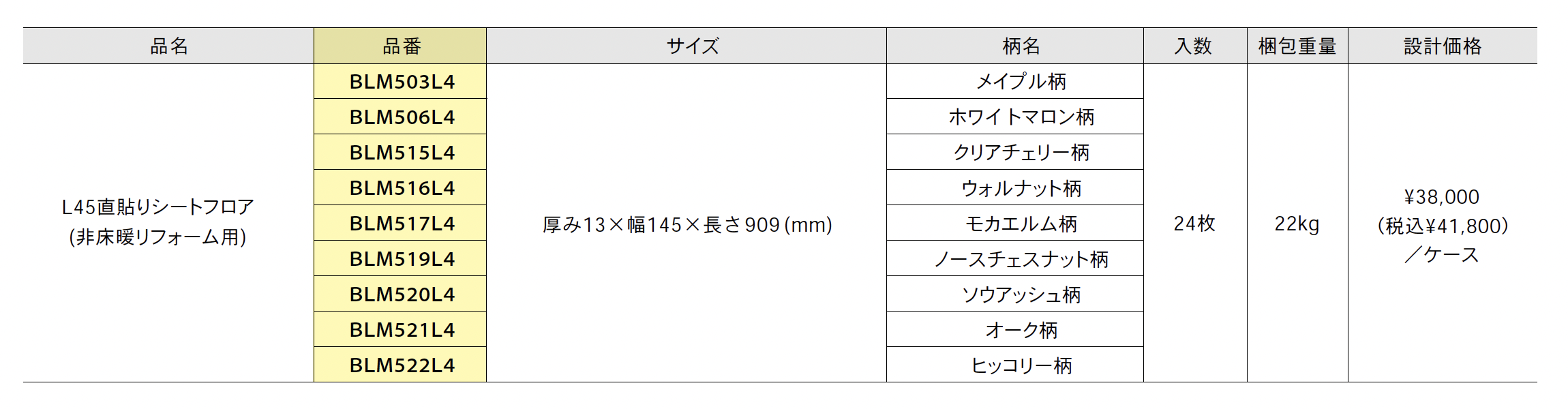 | カラー | メイプル柄 ホワイトマロン柄 クリアチェリー柄 ウォルナット柄 モカエルム柄 ノースチェスナット柄 ソウアッシュ柄 オーク柄 ヒッコリー柄 |