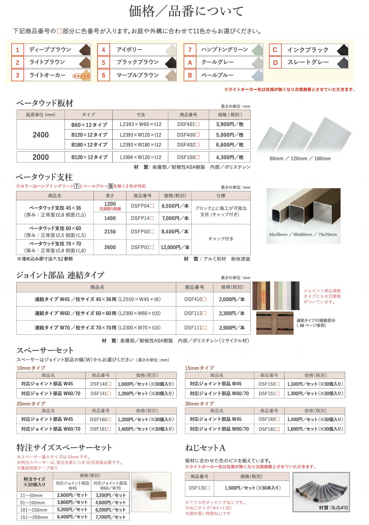 | 材質 | 耐候性樹脂 ポリスチレン樹脂(再生材) アルミ形材 粉体塗装 |