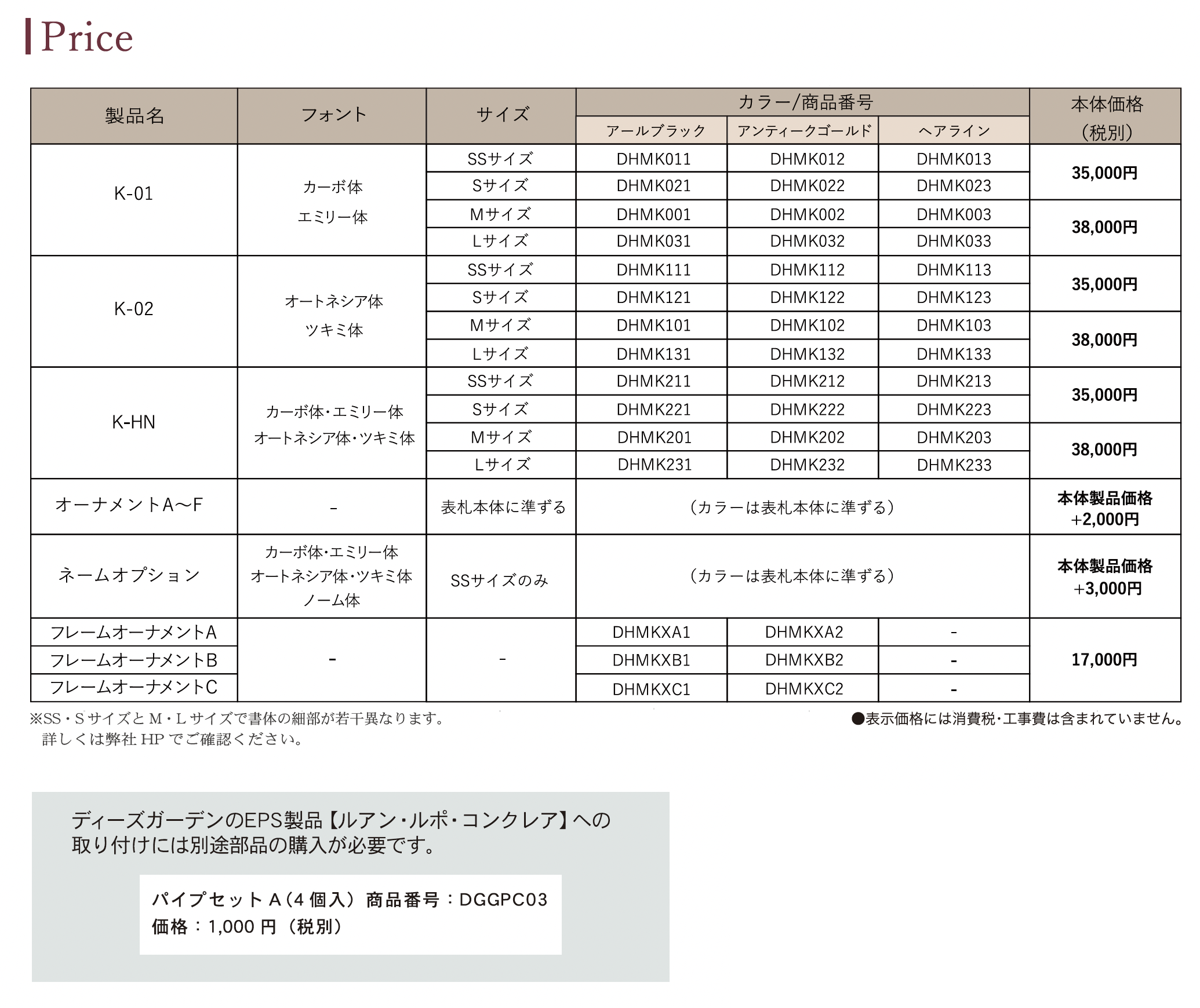 | 新旧品 | 切文字コレクション K02(ガーデン&エクステリアカタログ2025)切文字コレクション K02表札【2024年版】(ガーデン&エクステリアカタログ2024) |