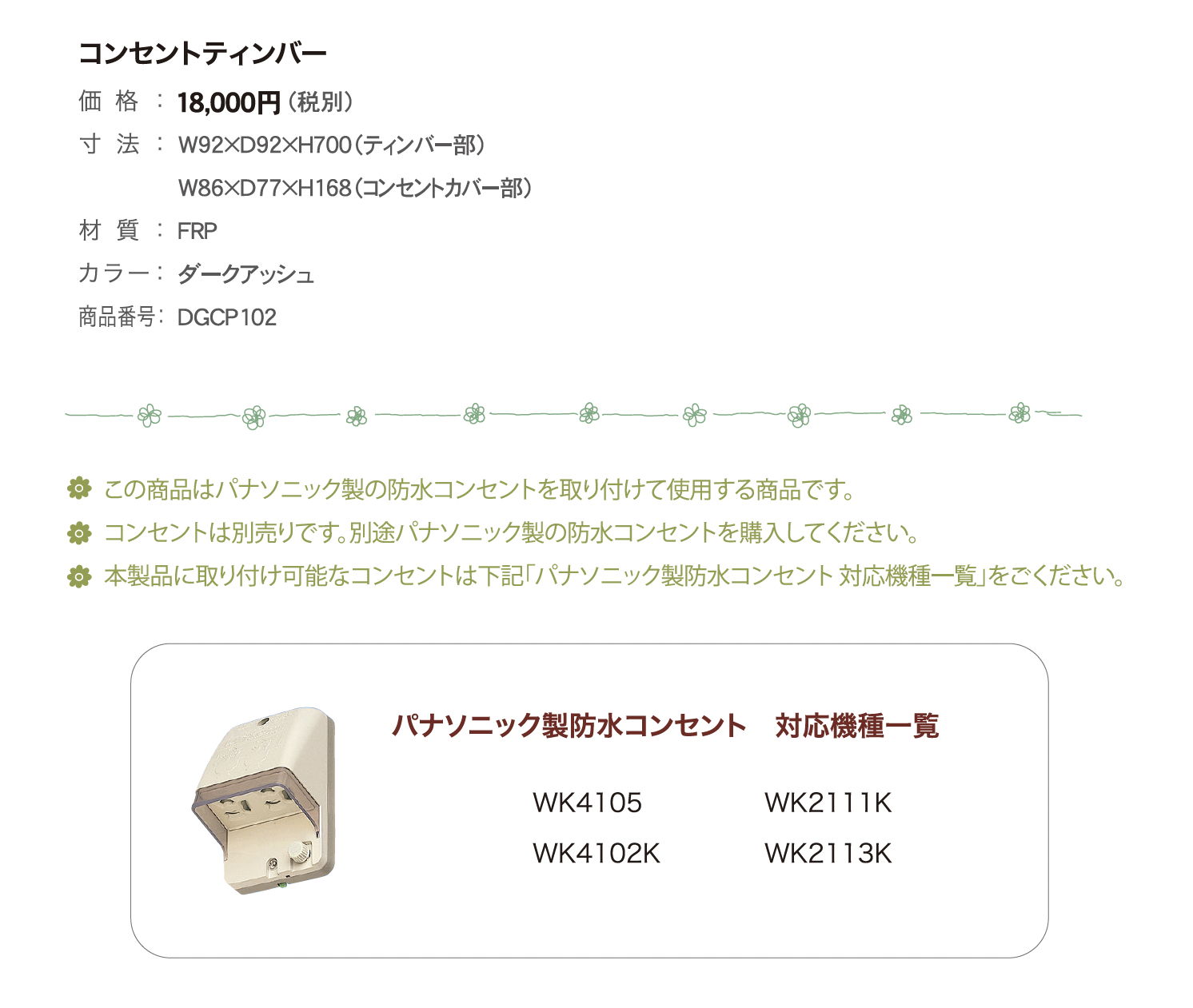 | 新旧品 | コンセントティンバー(ガーデン&エクステリアカタログ2025)コンセントティンバー【2024年版】(ガーデン&エクステリアカタログ2024) |