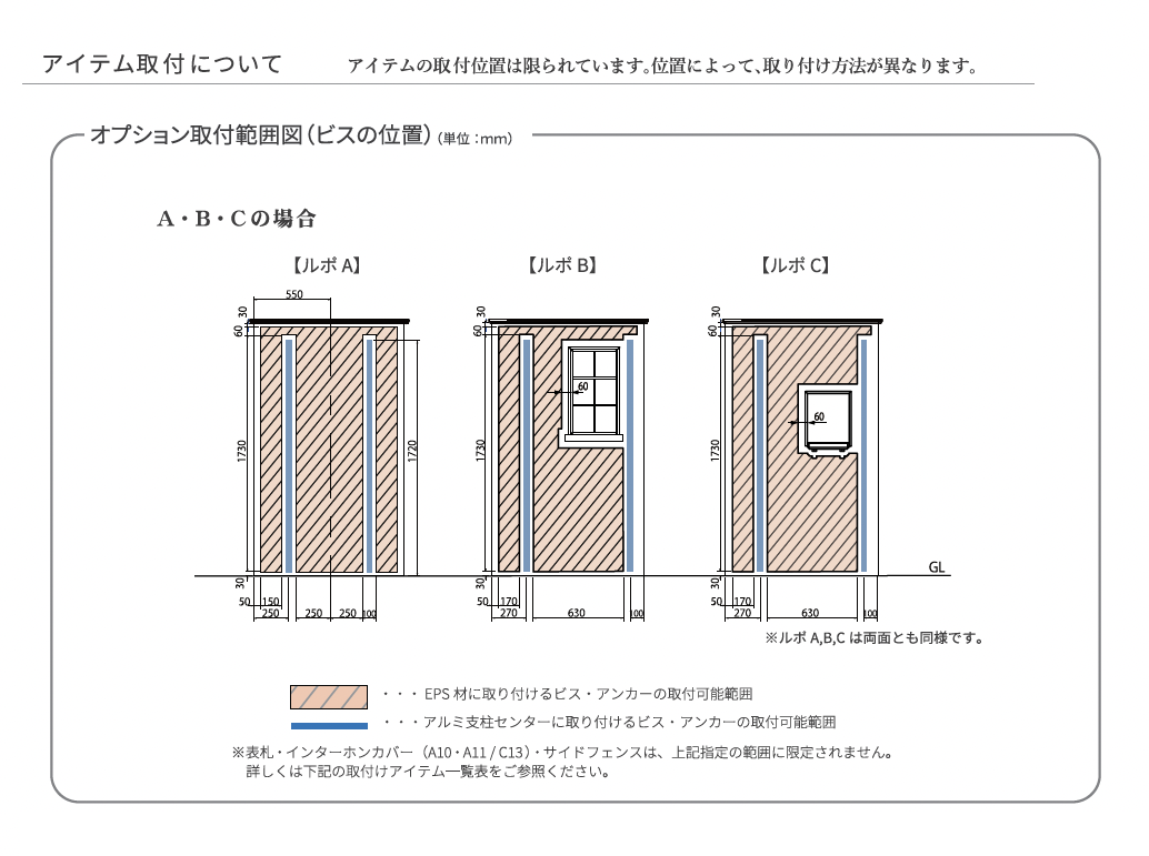材質 | EPS(発泡樹脂) アルミ材 FRP ガラスメッシュ 複層塗材 |