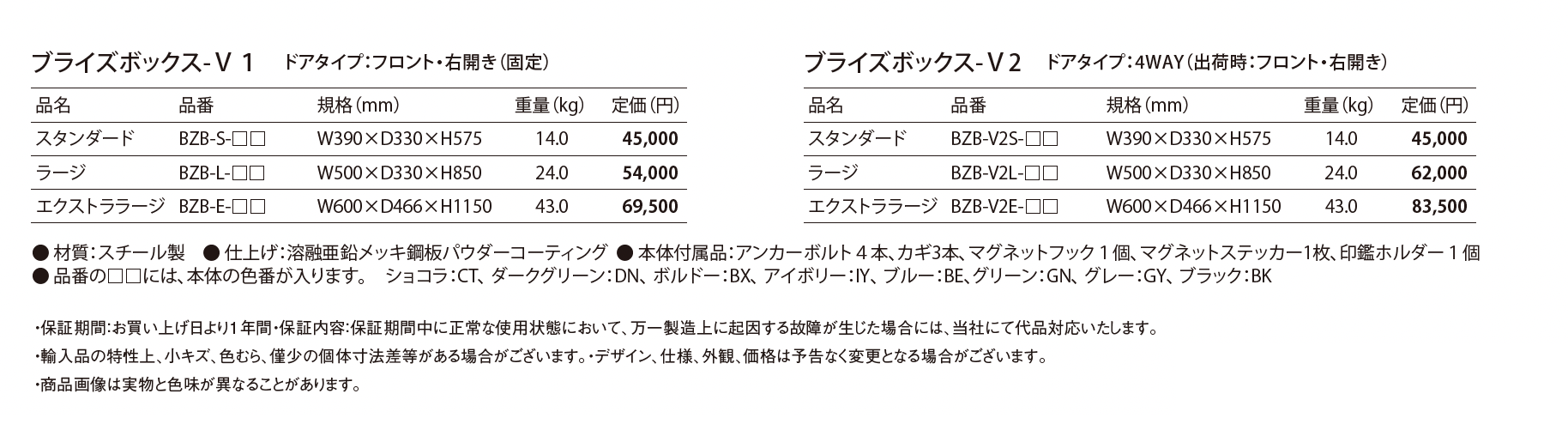 カラー | CT:ショコラ DN:ダークグリーン BX:ボルドー IY:アイボリー BE:ブルー GN:グリーン GY:グレー BK:ブラック |