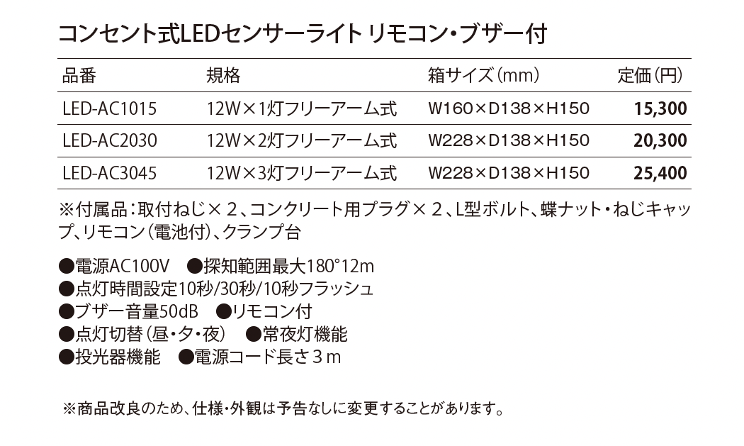 LEDセンサーライト リモコン・ブザー付(コンセント式)
