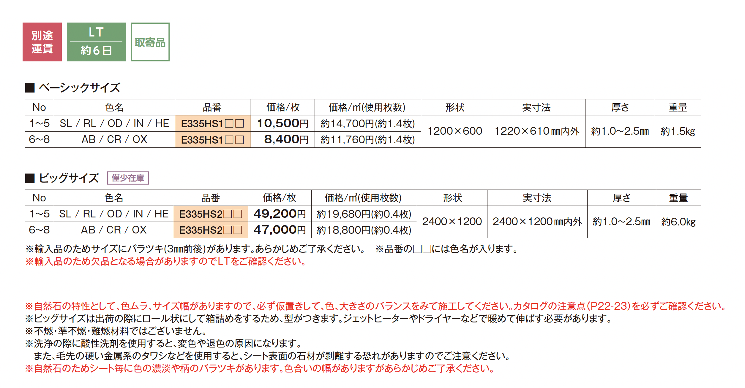 | カラー | SL RL OD IN HE AB CR OX |