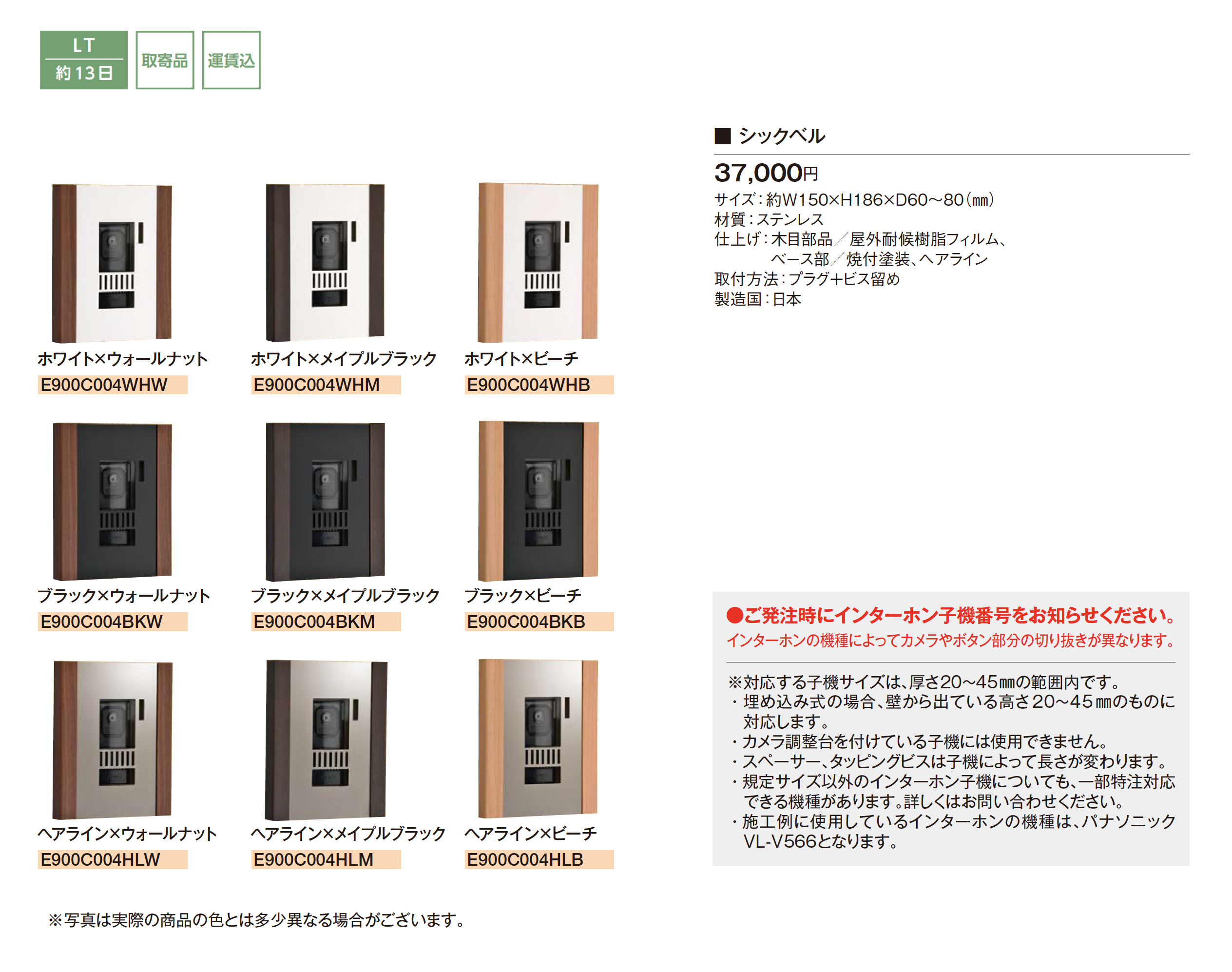 | カラー | WH:ホワイト BK:ブラック HL:ヘアライン W:ウォールナット M:メイプルブラック B:ビーチ |