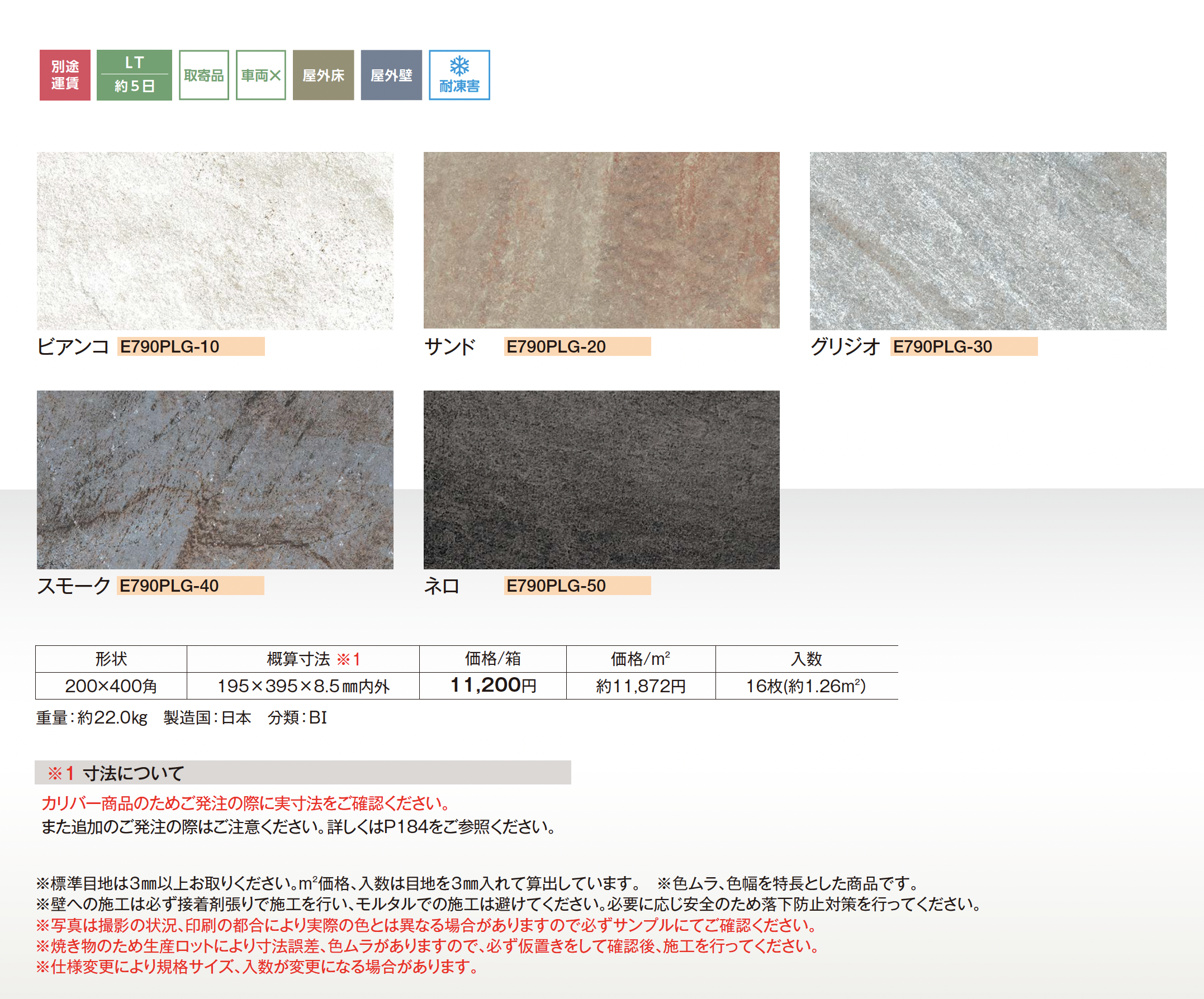 | カラー | ビアンコ サンド グリジオ スモーク ネロ |