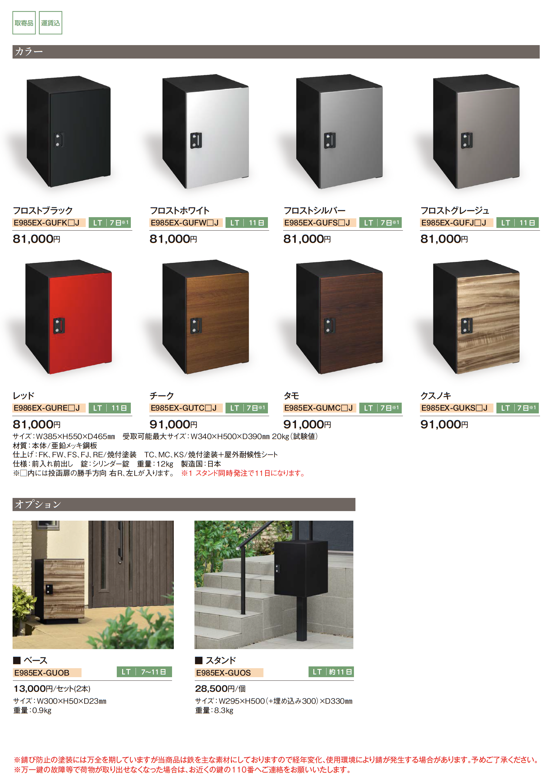 | カラー | FK:フロストブラック FW:フロストホワイト FS:フロストシルバー FJ:フロストグレージュ RE:レッド TC:チーク MC:タモ KS:クスノキ |