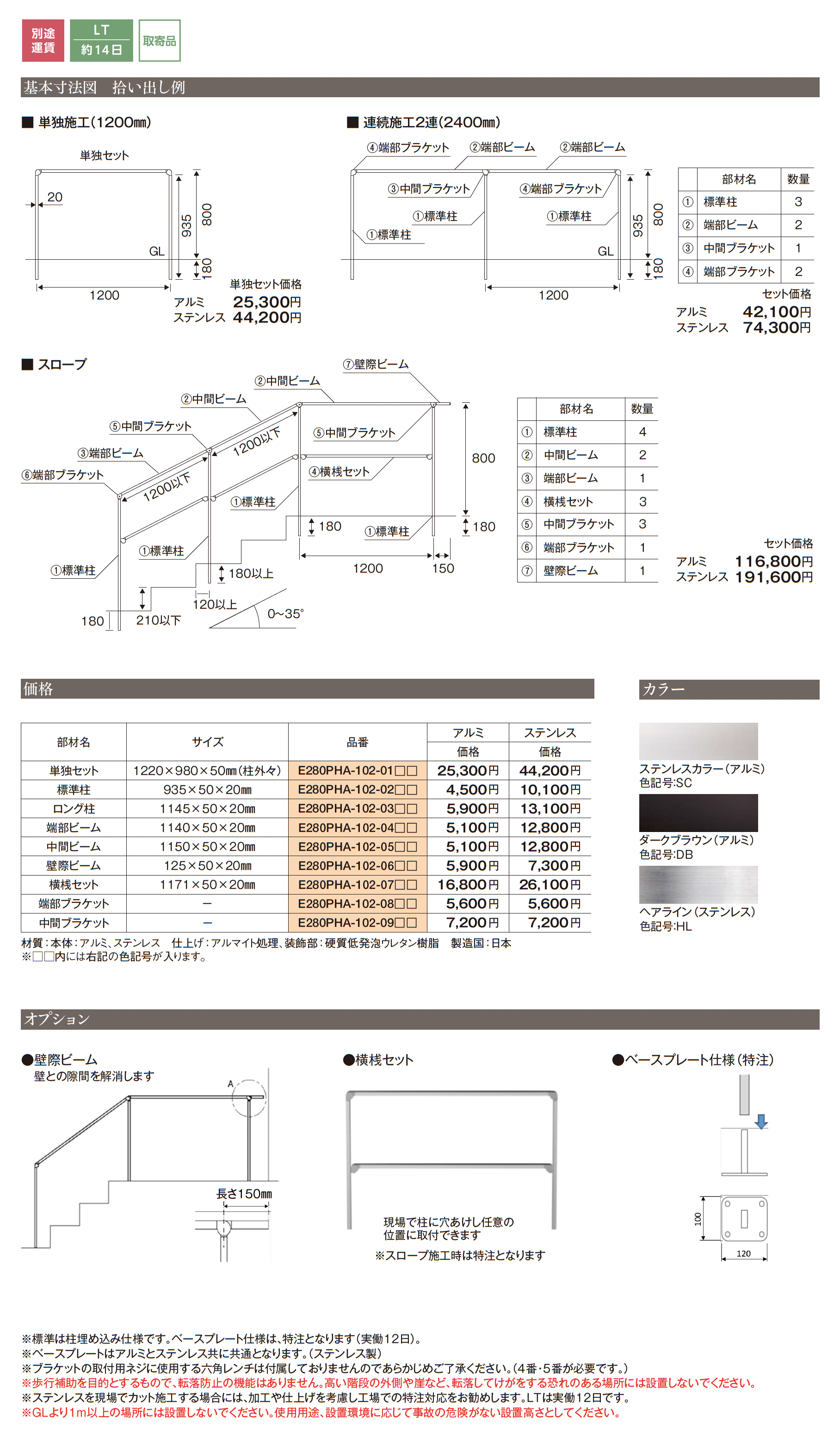 | カラー | SC:ステンレスカラー DB:ダークブラウン HL:ヘアライン |