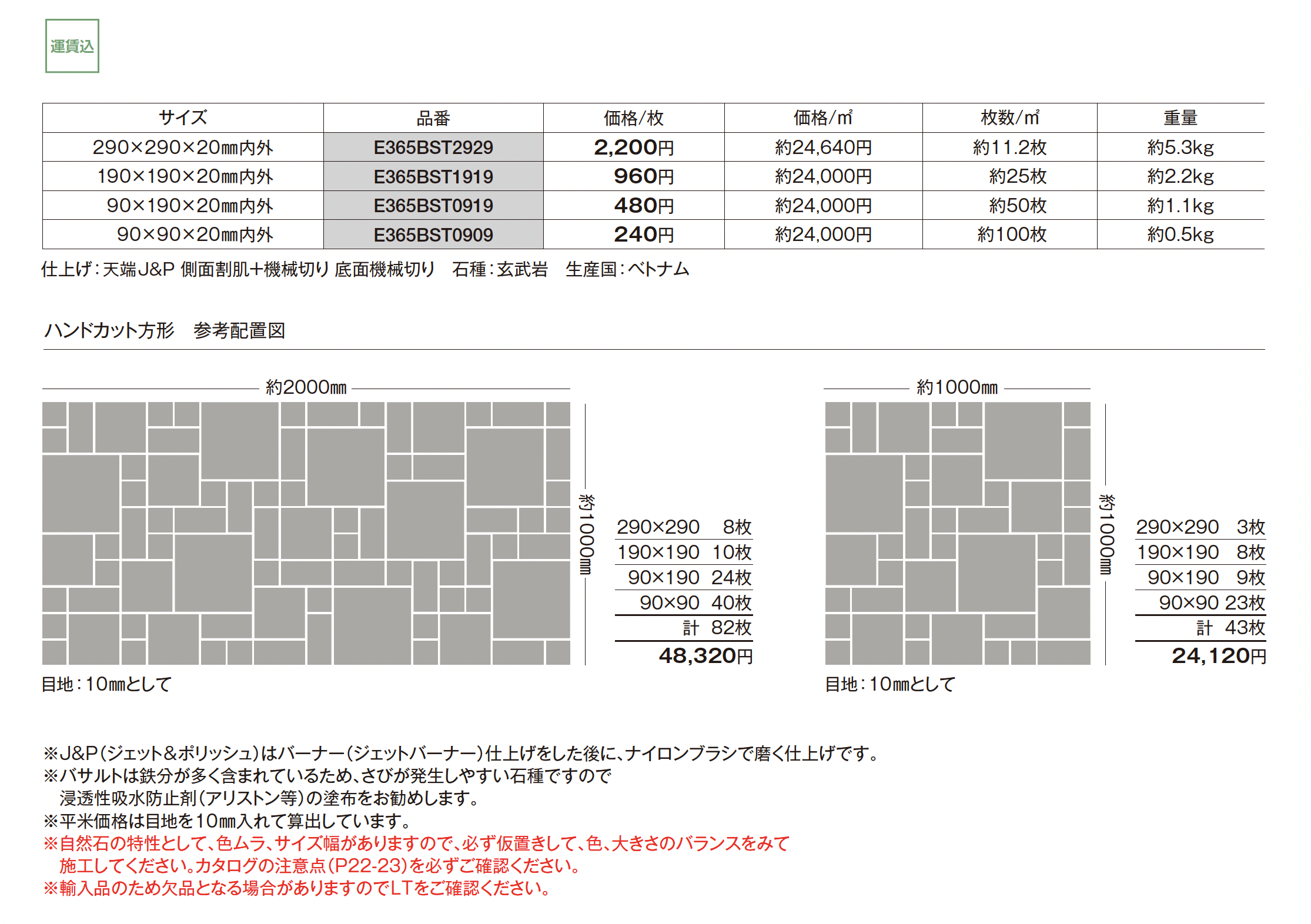 バサルトストーン ハンドカット方形