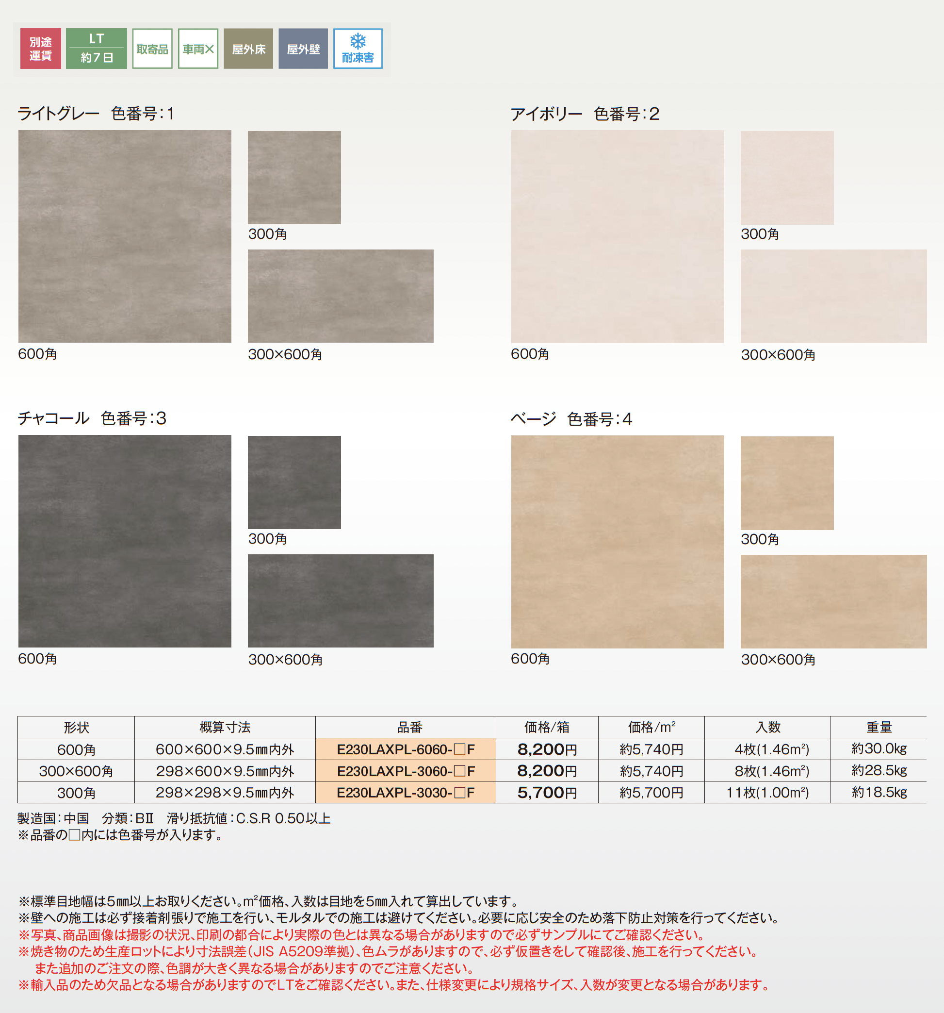 | カラー | 1:ライトグレー 2:アイボリー 3:チャコール 4:べージ |