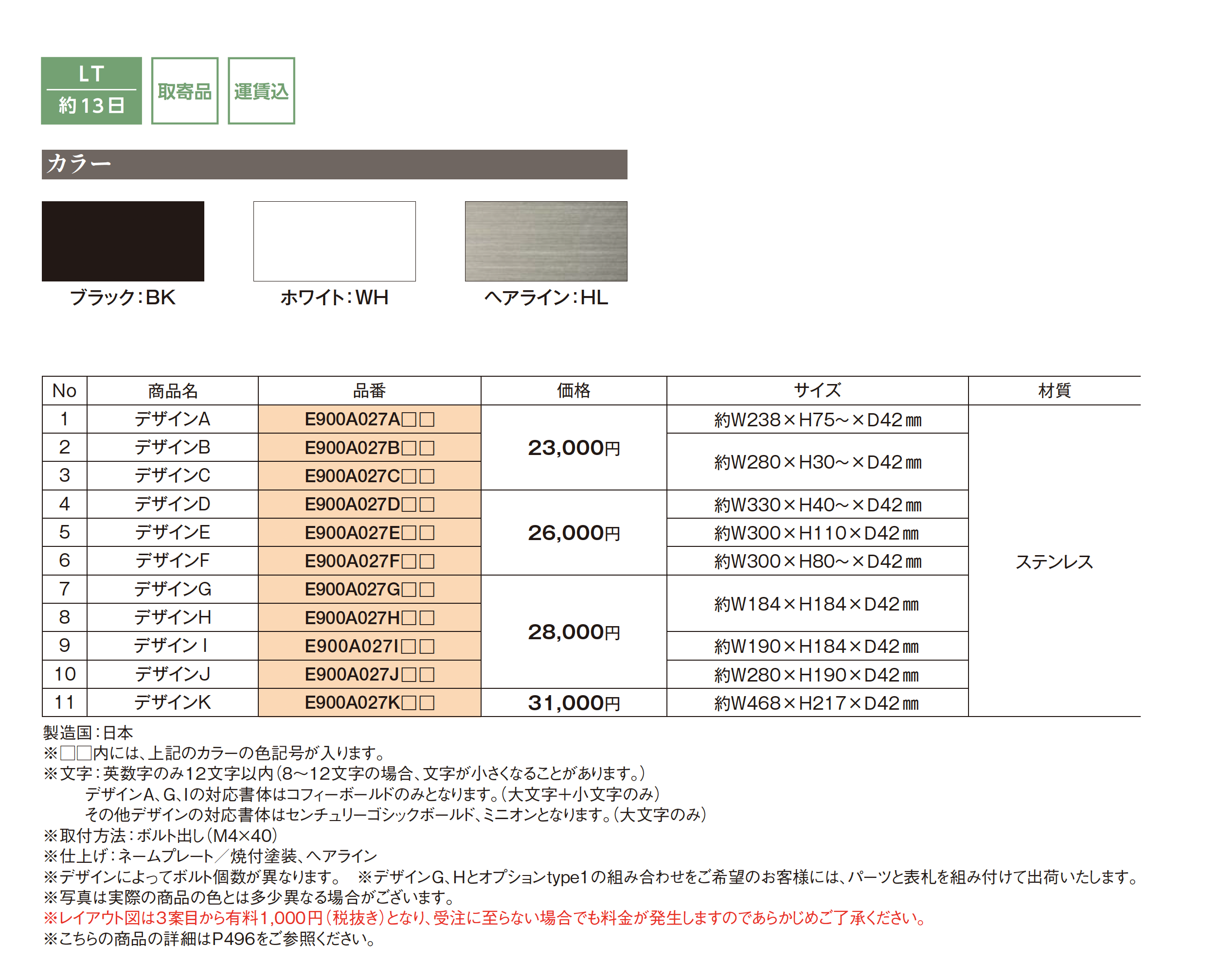 | カラー | BK:ブラック WH:ホワイト HL:ヘアライン |
