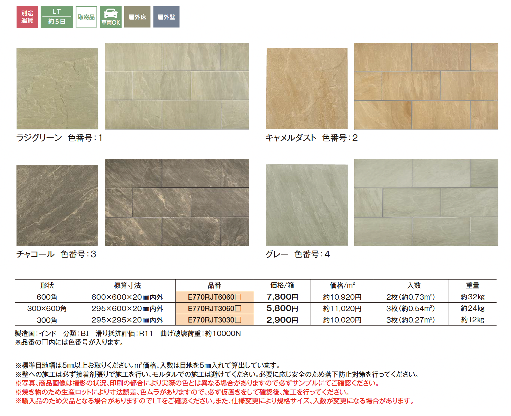 | カラー | 1:ラジグリーン 2:キャメルダスト 3:チャコール 4:グレー |