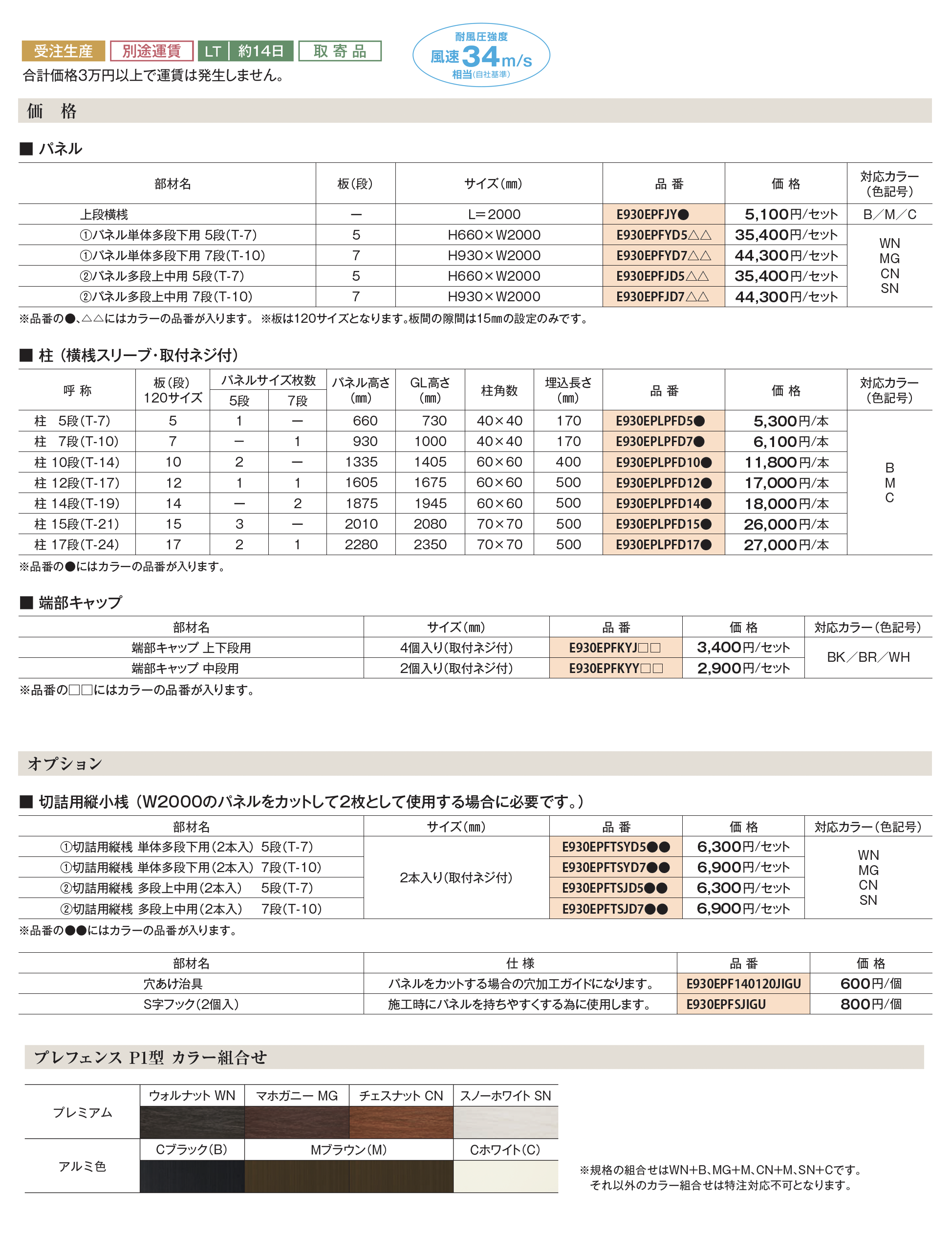 | カラー | WN:ウォルナット MG:マホガニー CN:チェスナット SN:スノーホワイト B:Cブラック M:Mブラウン C:Cホワイト |