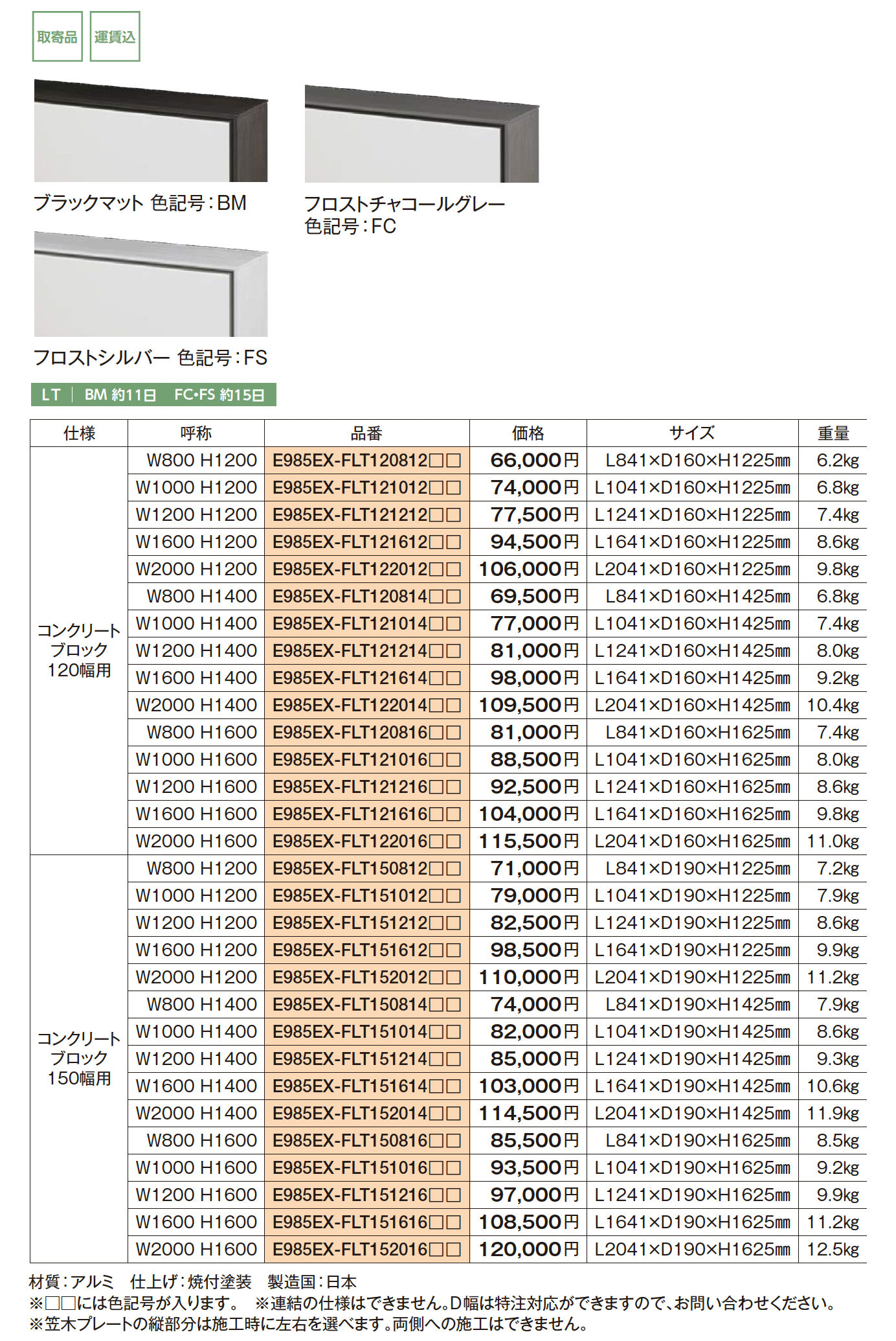| カラー | BM:ブラックマット FC:フロストチャコールグレー FS:フロストシルバー |