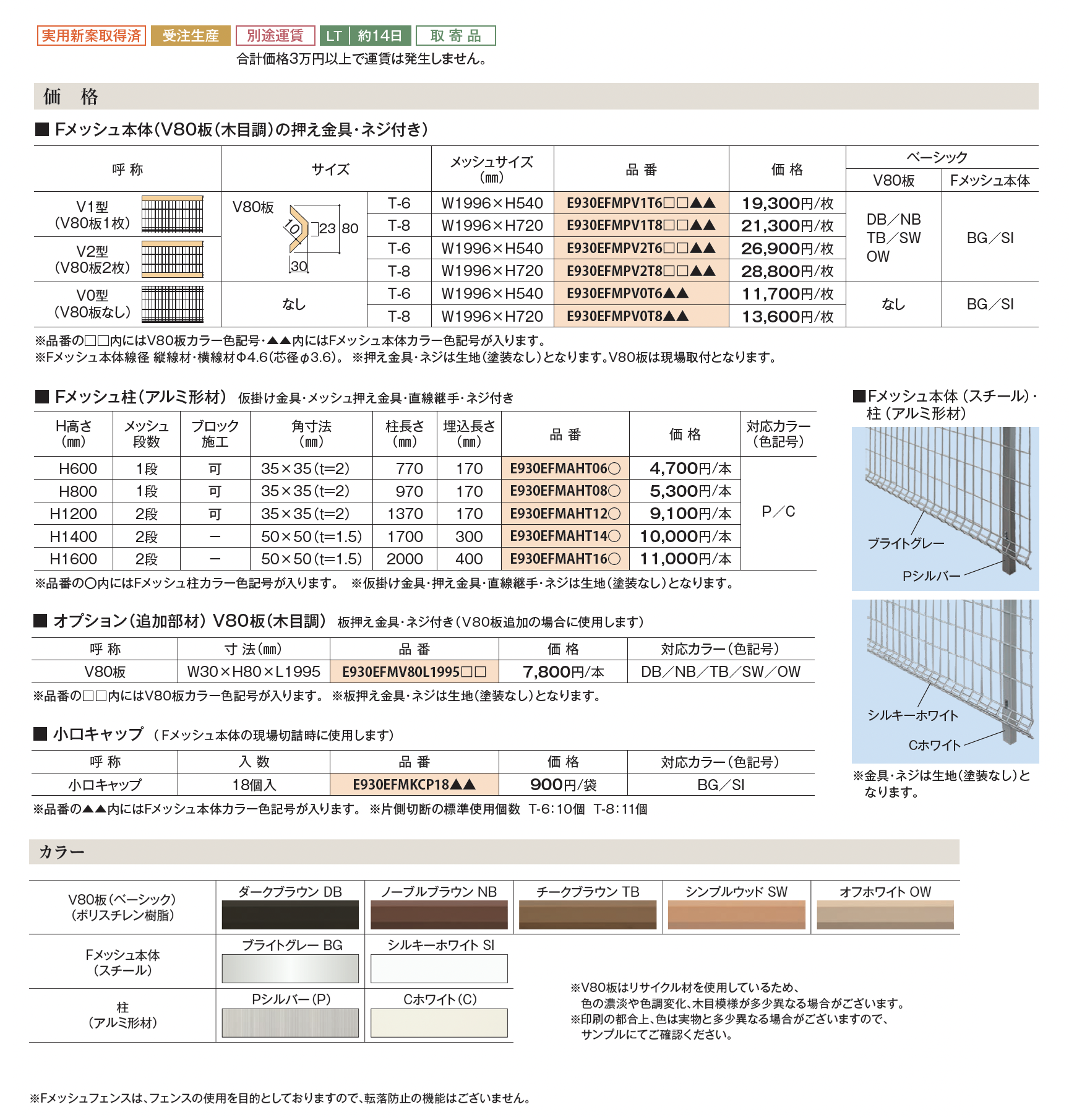 | 新旧品 | FメッシュフェンスV型【2025年版】(エクシスランドvol.21)FメッシュフェンスV型【2024年版】(エクシスランドvol.20) |