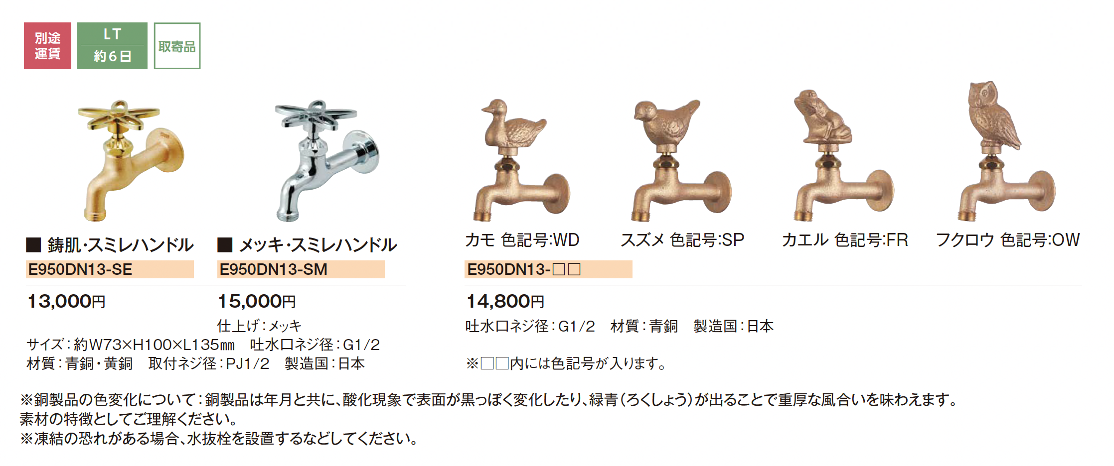 | カラー | 鋳肌 メッキ WD:カモ SP:スズメ FR:カエル OW:フクロウ |