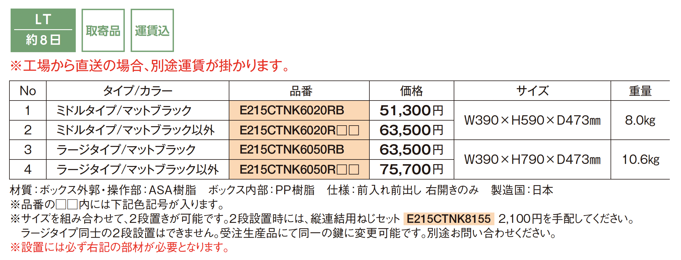 | カラー | B:マットブラック WS:漆喰ホワイト SC:ステンシルバー MA:エイジングブラウン TB:鋳鉄ブラック XR:ボルドー MW:ダークウッド |