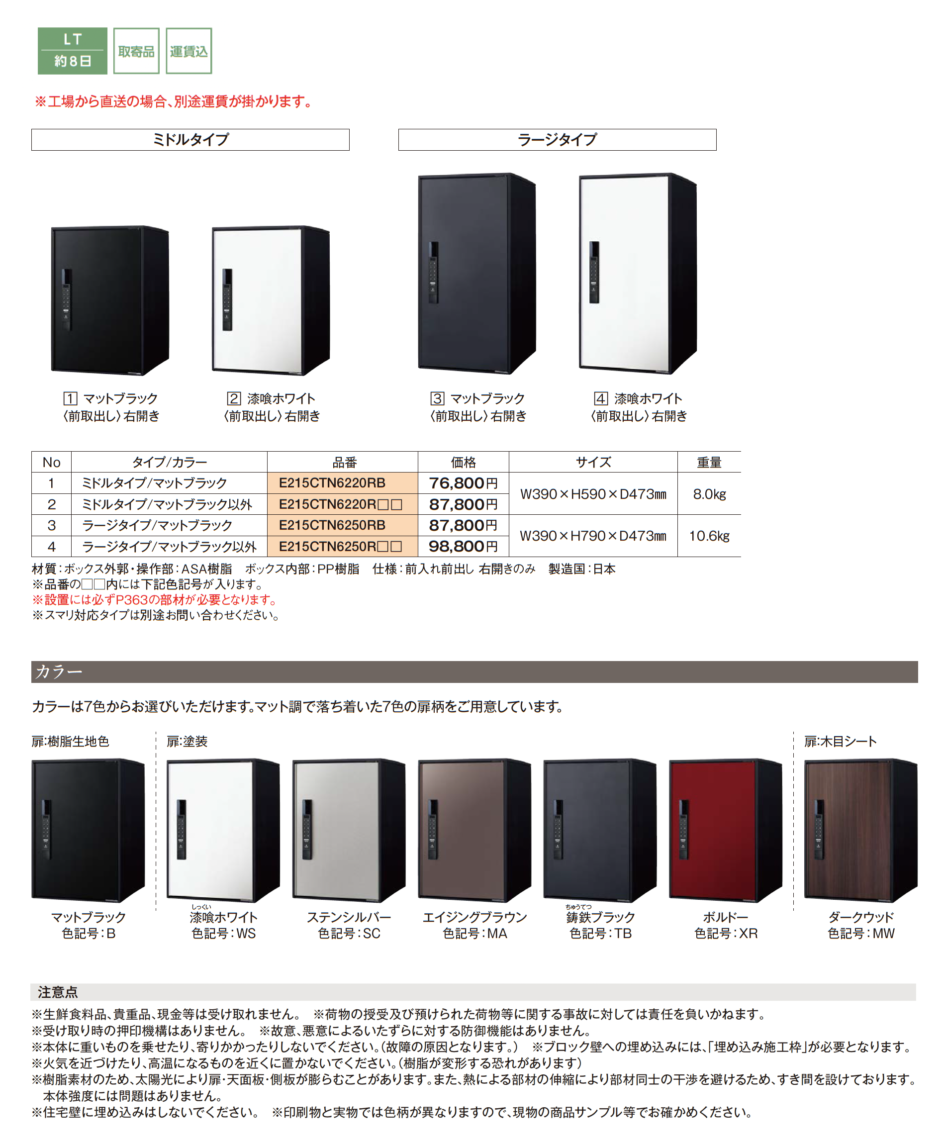| カラー | B:マットブラック WS:漆喰ホワイト SC:ステンシルバー MA:エイジングブラウン TB:鋳鉄ブラック XR:ボルドー MW:ダークウッド |