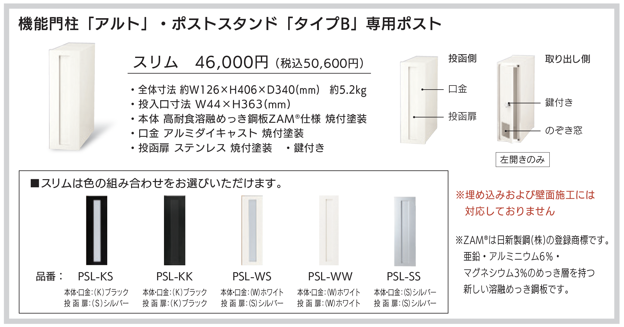 | デザイン | ポスト埋込み型 荷物背面取り出し |