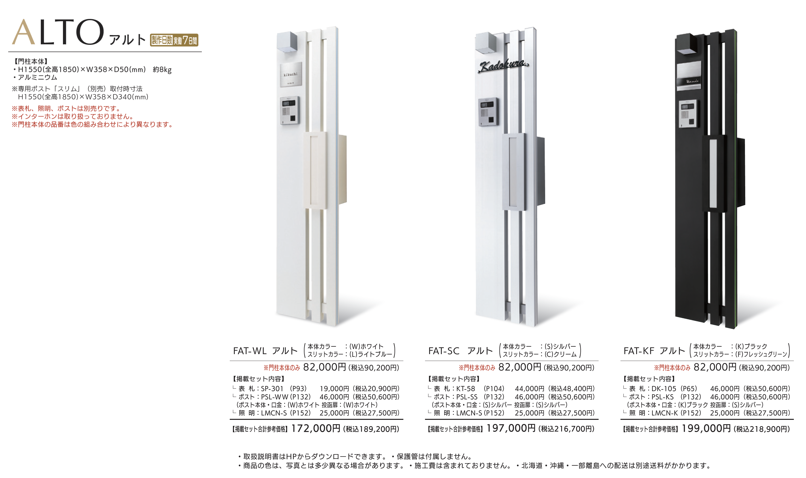 | 新旧品 | アルト【2025年版】(表札総合カタログWELNA Vol.23)アルト【2024年版】(表札総合カタログWELNA Vol.22)アルト【2023年版】(表札総合カタログWELNA Vol.21) |