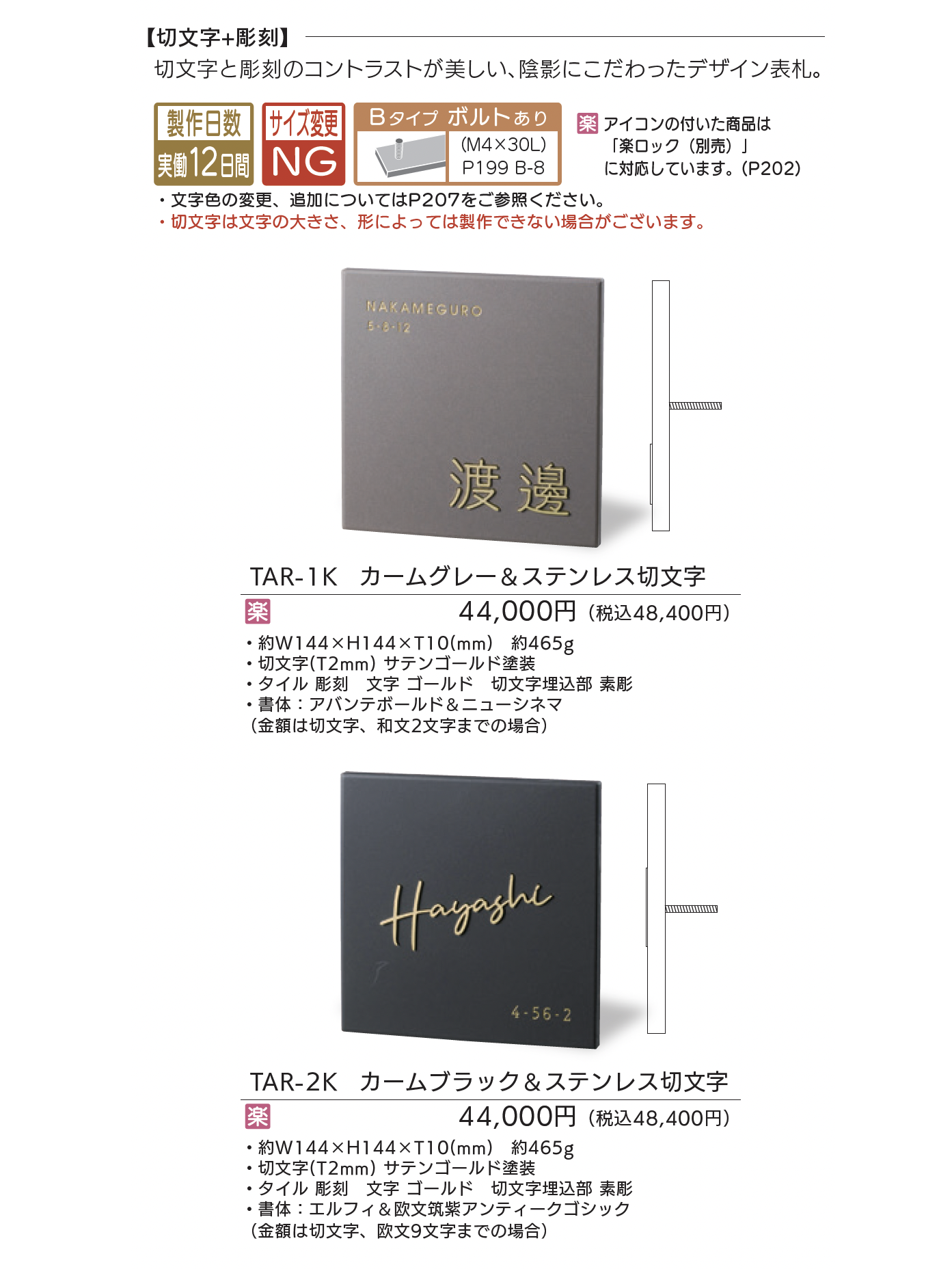 | 標準納期 | 【切文字+彫刻】実働制作日数12日間 /【彫刻】実働制作日数3日間 |
