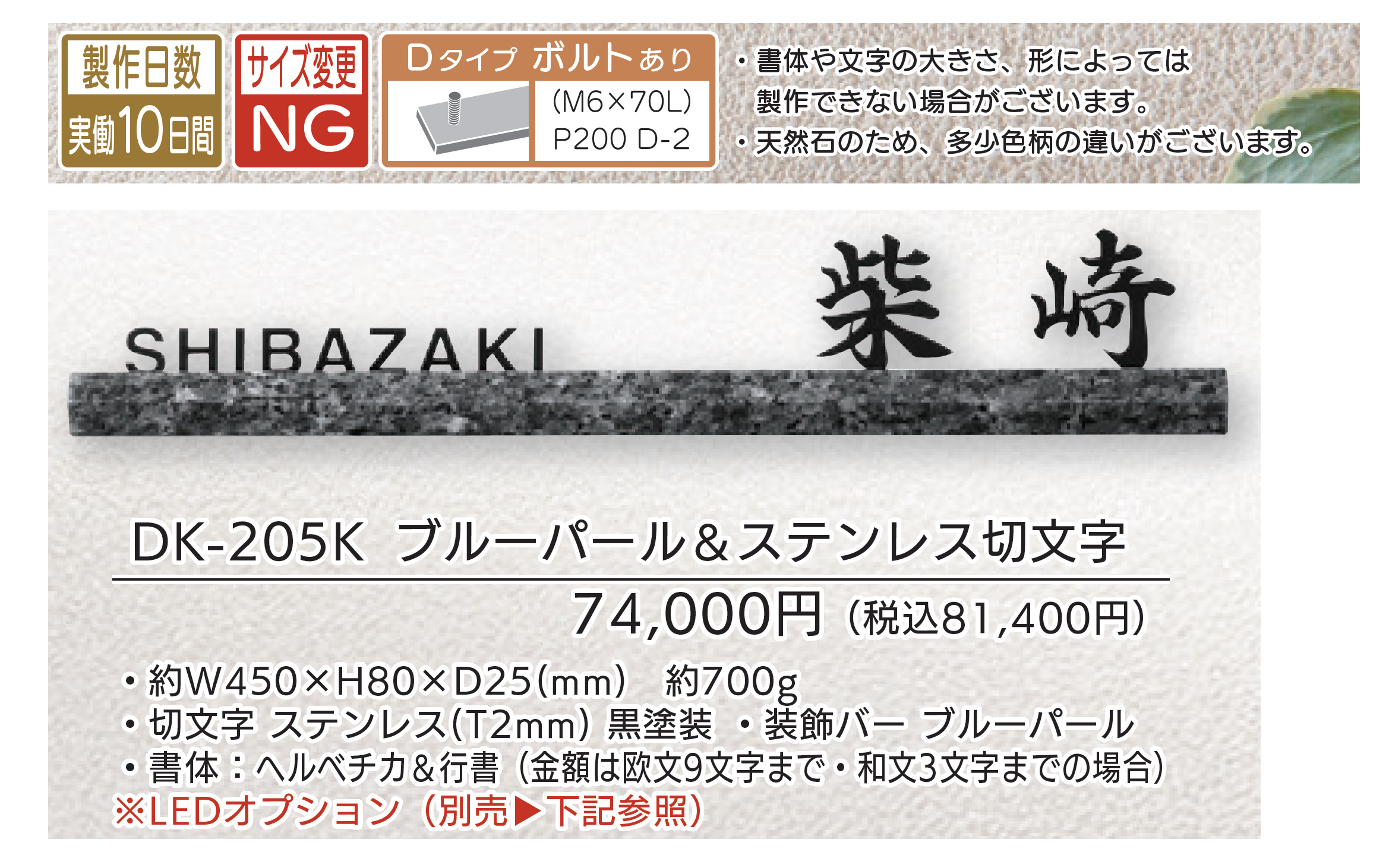 ● 書体や文字の大きさ、形によっては製作できない場合がございます。 ● 天然石のため、多少色柄の違いがございます。