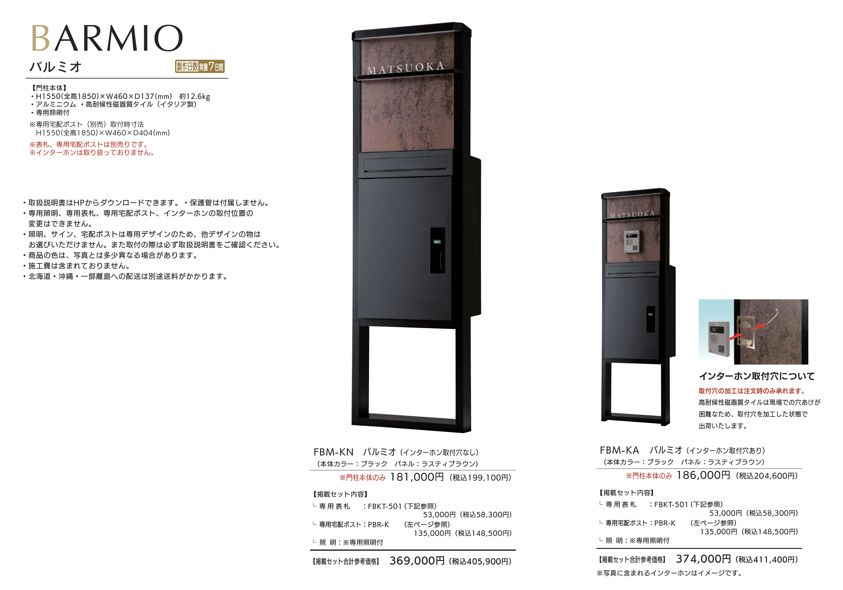 | 新旧品 | バルミオ【2025年版】(表札総合カタログWELNA Vol.23)バルミオ【2024年版】(表札総合カタログWELNA Vol.22)バルミオ【2023年版】(表札総合カタログWELNA Vol.21) |