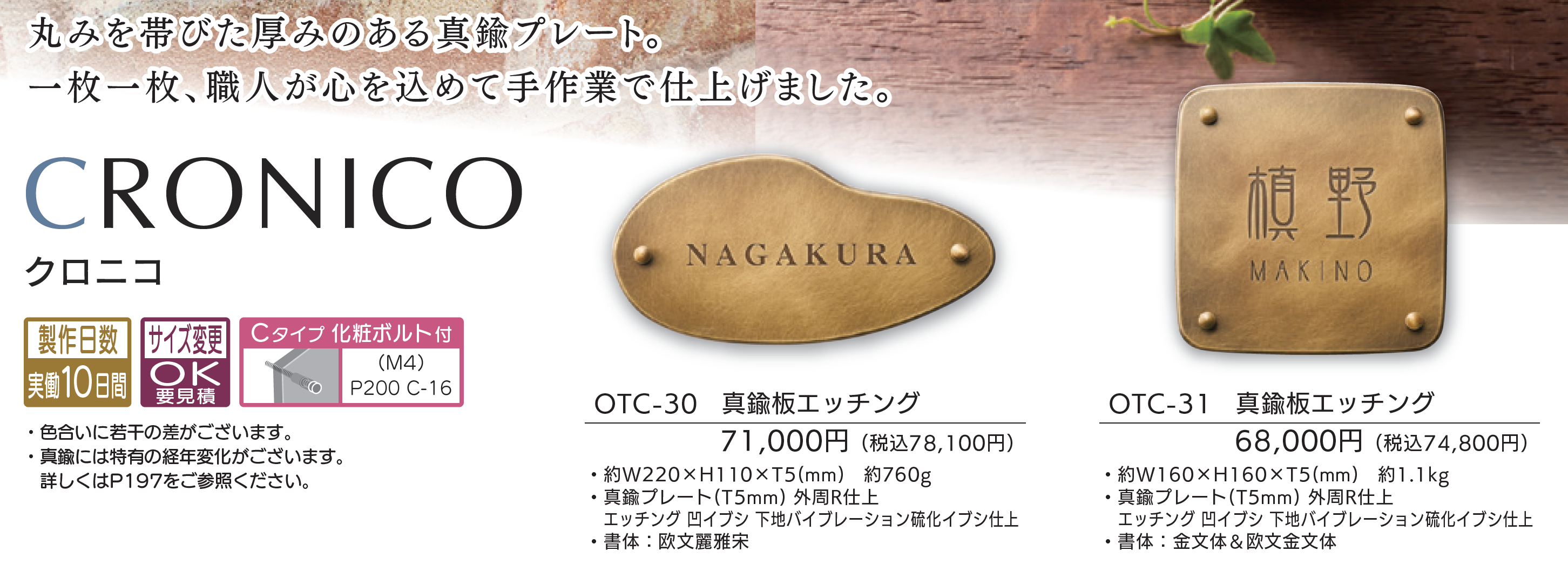 | 新旧品 | クロニコ【2025年版】(表札総合カタログWELNA Vol.23)クロニコ【2024年版】(表札総合カタログWELNA Vol.22)クロニコ【2023年版】(表札総合カタログWELNA Vol.21) |