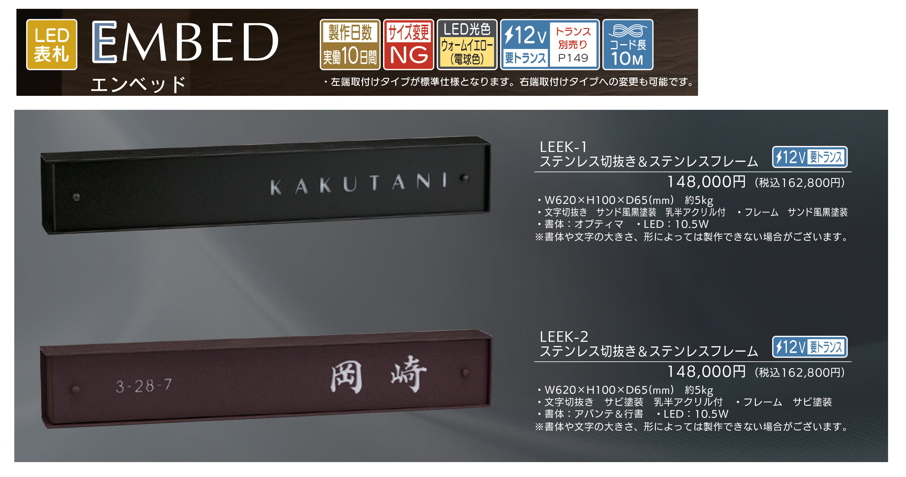 | 新旧品 | エンベッド【2025年版】(表札総合カタログWELNA Vol.23)エンベッド【2024年版】(表札総合カタログWELNA Vol.22)エンベッド【2023年版】(表札総合カタログWELNA Vol.21) |