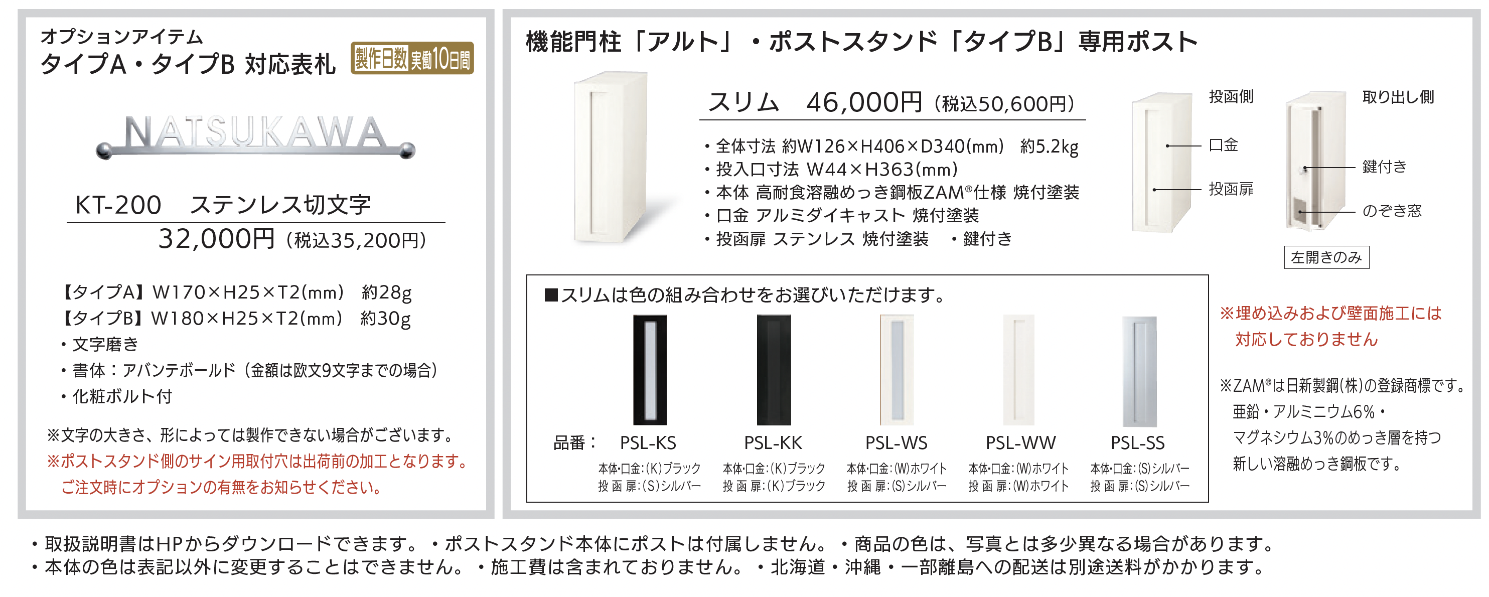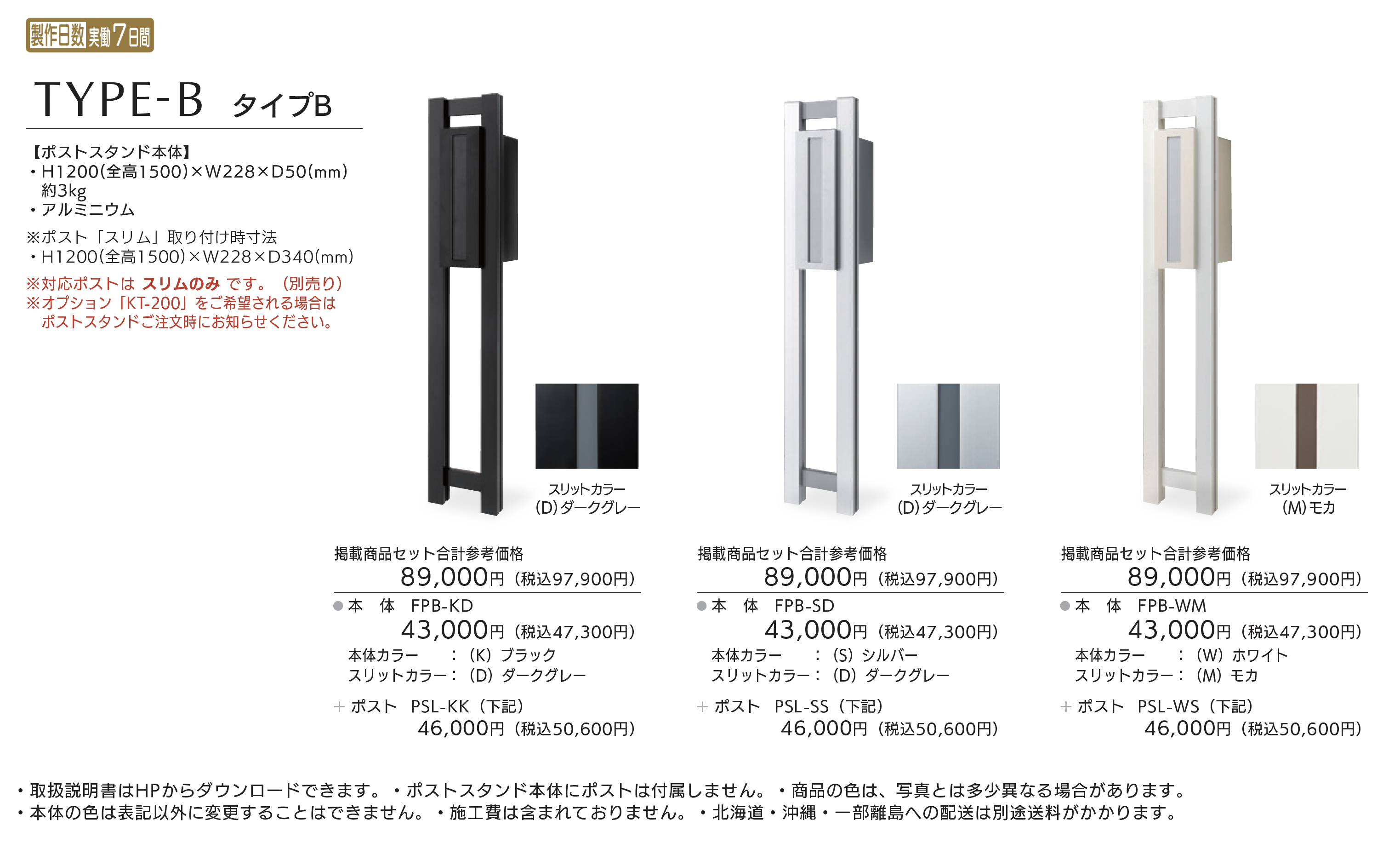 ※ポストスタンド本体にポストは付属しません。 ※商品の色は、写真とは多少異なる場合がございます。 ※本体の色は表記以外に変更することはできません。 ※施工費は含まれておりません。 ※北海道・沖縄・一部離島への配送は別途送料がかかります