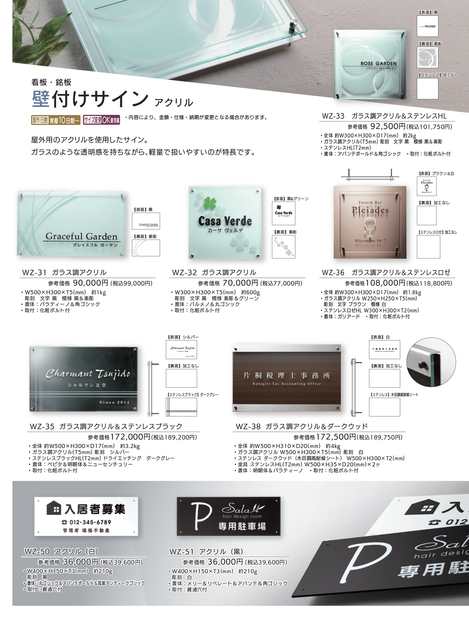 【看板・銘板】ガラス調アクリル・アクリルサイン【2025年版】(表札総合カタログWELNA Vol.23)