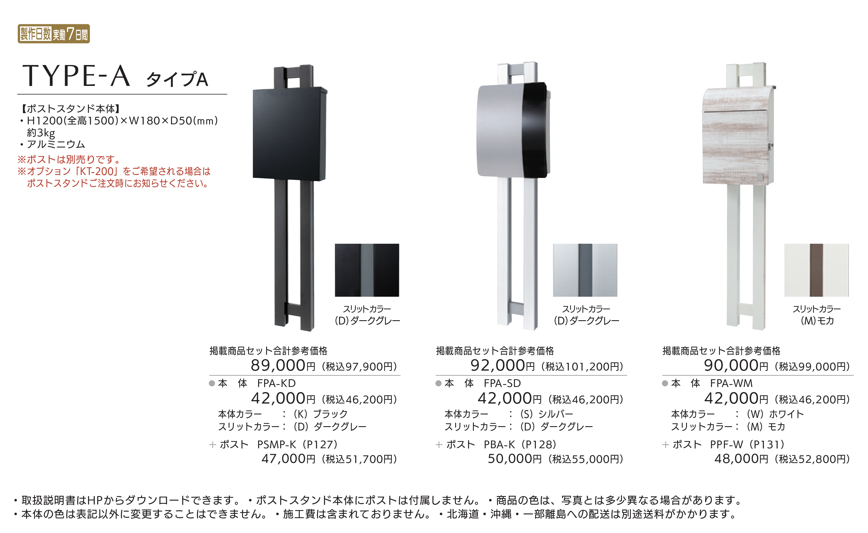 ※ポストスタンド本体にポストは付属しません。 ※商品の色は、写真とは多少異なる場合がございます。 ※本体の色は表記以外に変更することはできません。 ※施工費は含まれておりません。 ※北海道・沖縄・一部離島への配送は別途送料がかかります