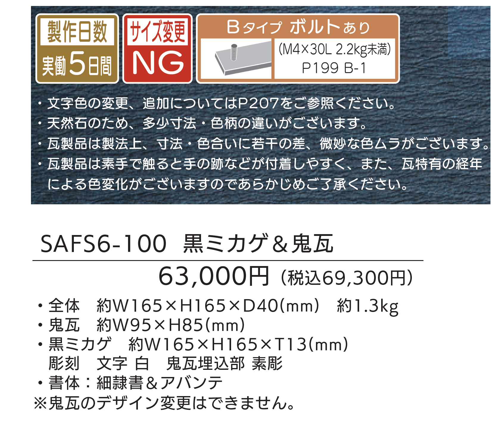 | 材質 | 黒ミカゲ 鬼瓦 |