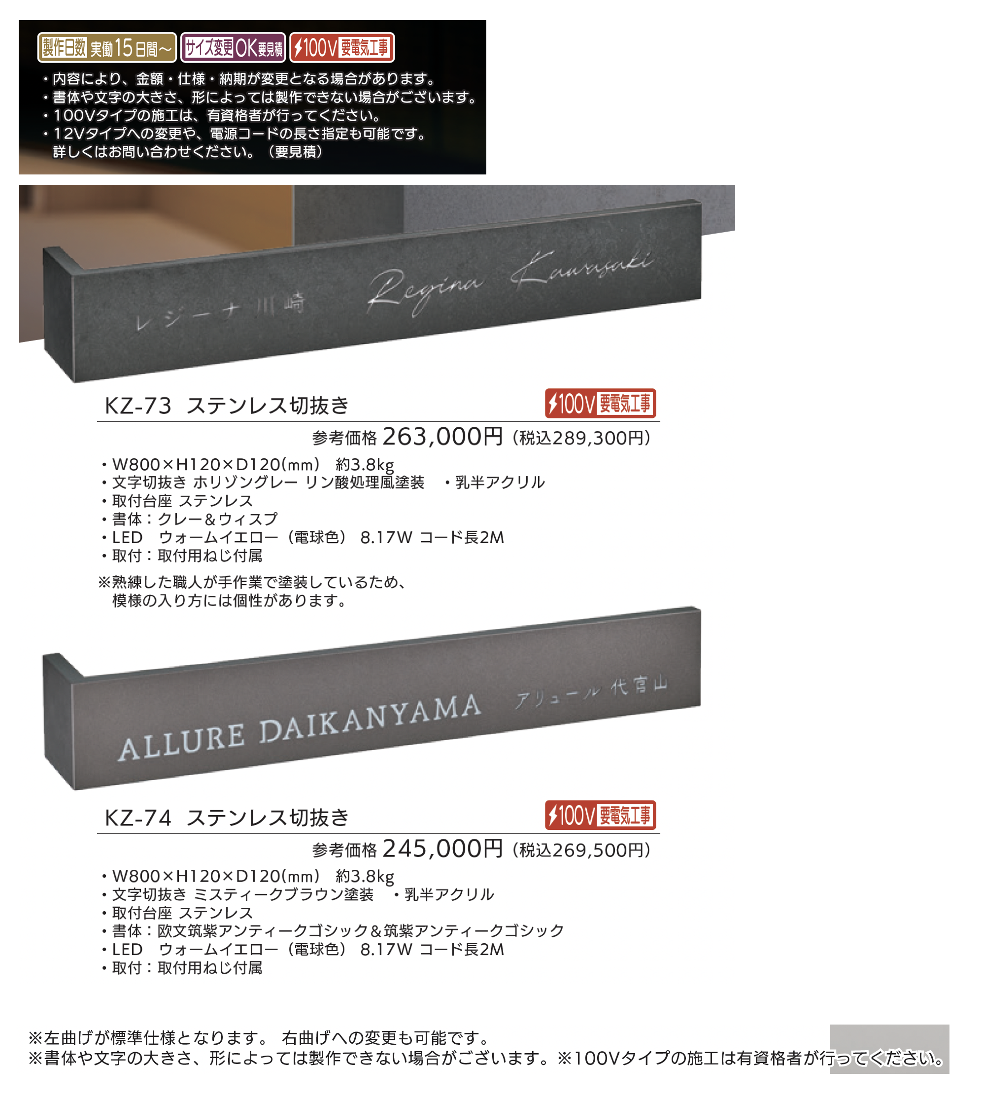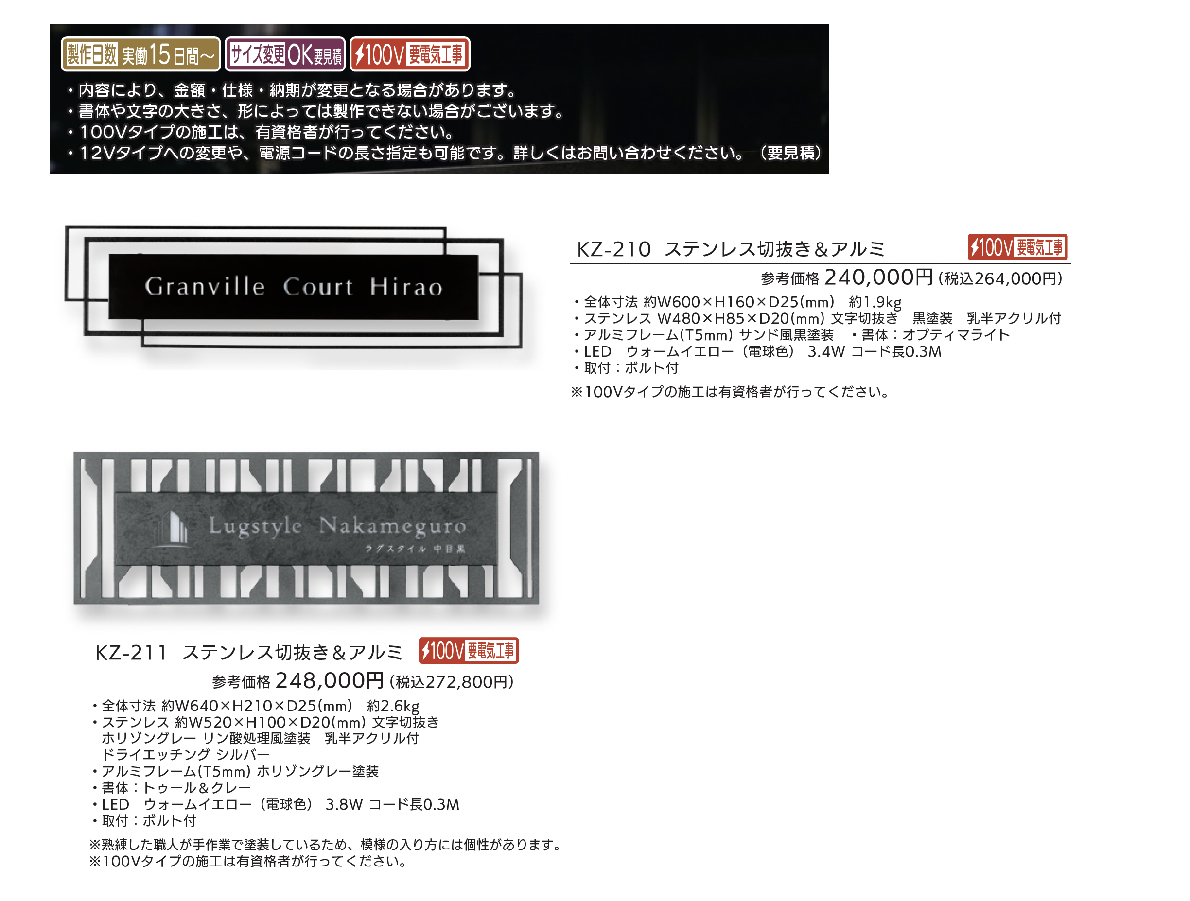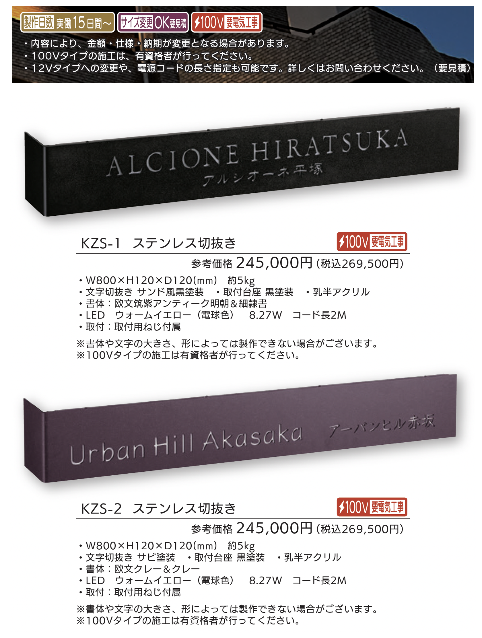 | 新旧品 | 【看板・銘板】LEDサイン 100V ステンレス切抜き&アルミ【2025年版】(表札総合カタログWELNA Vol.23) |