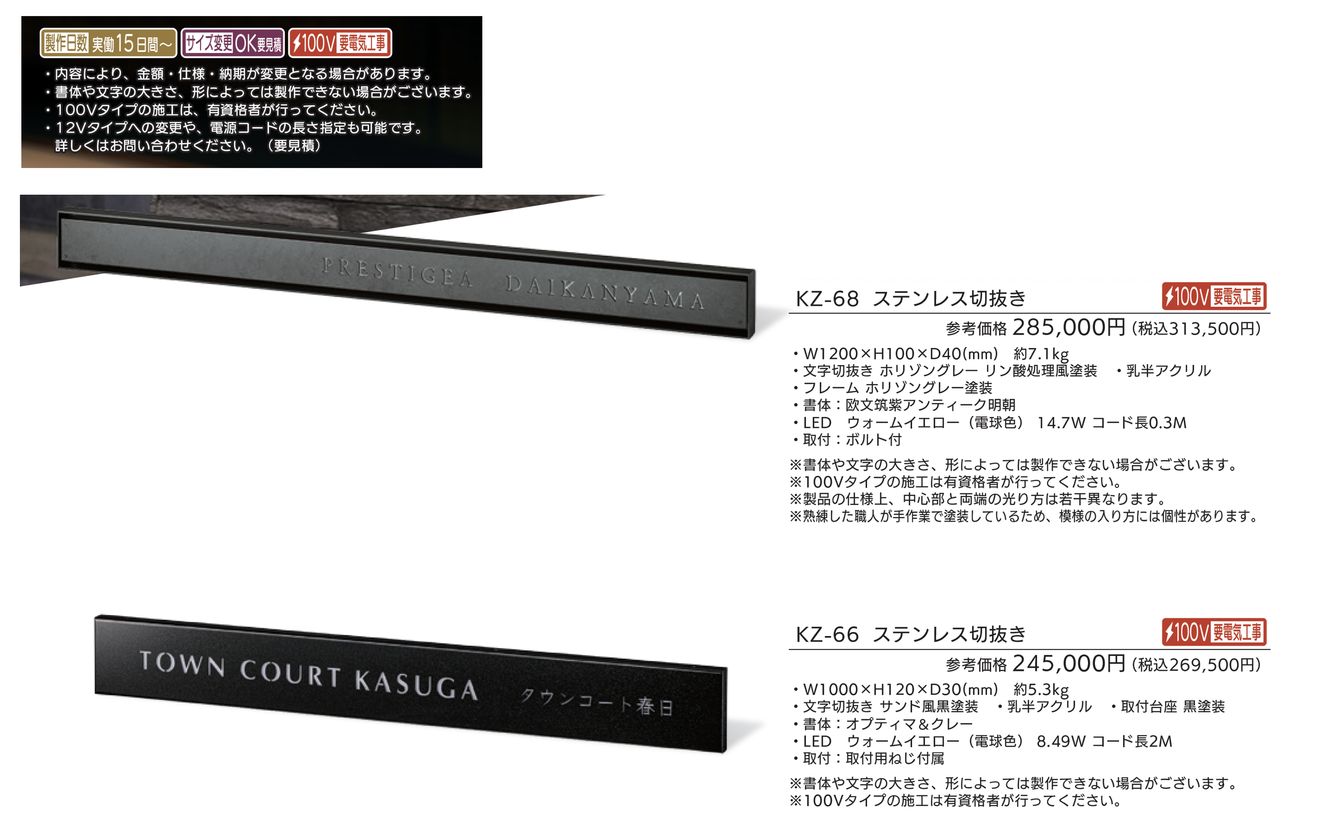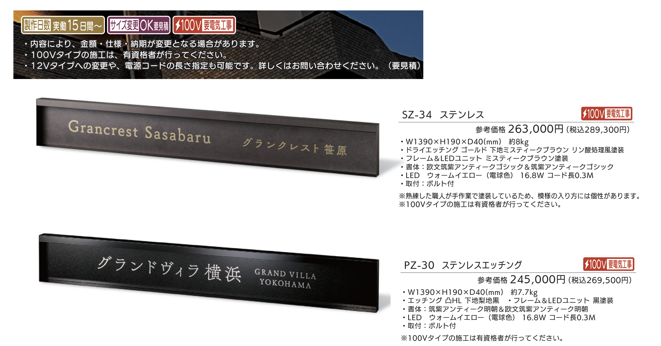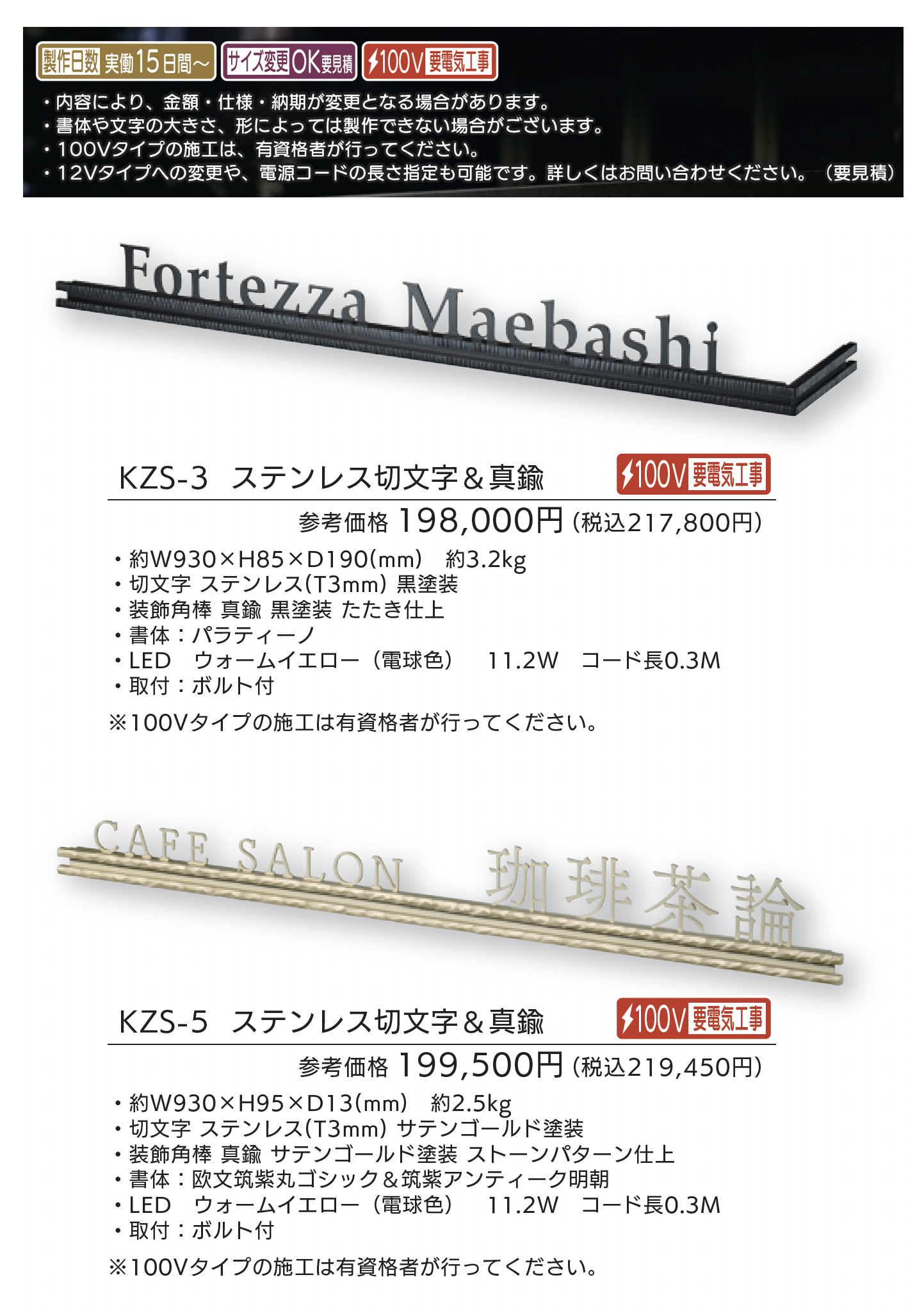 | 新旧品 | 【看板・銘板】LEDサイン 100V ステンレス切抜き&アルミ【2025年版】(表札総合カタログWELNA Vol.23) |