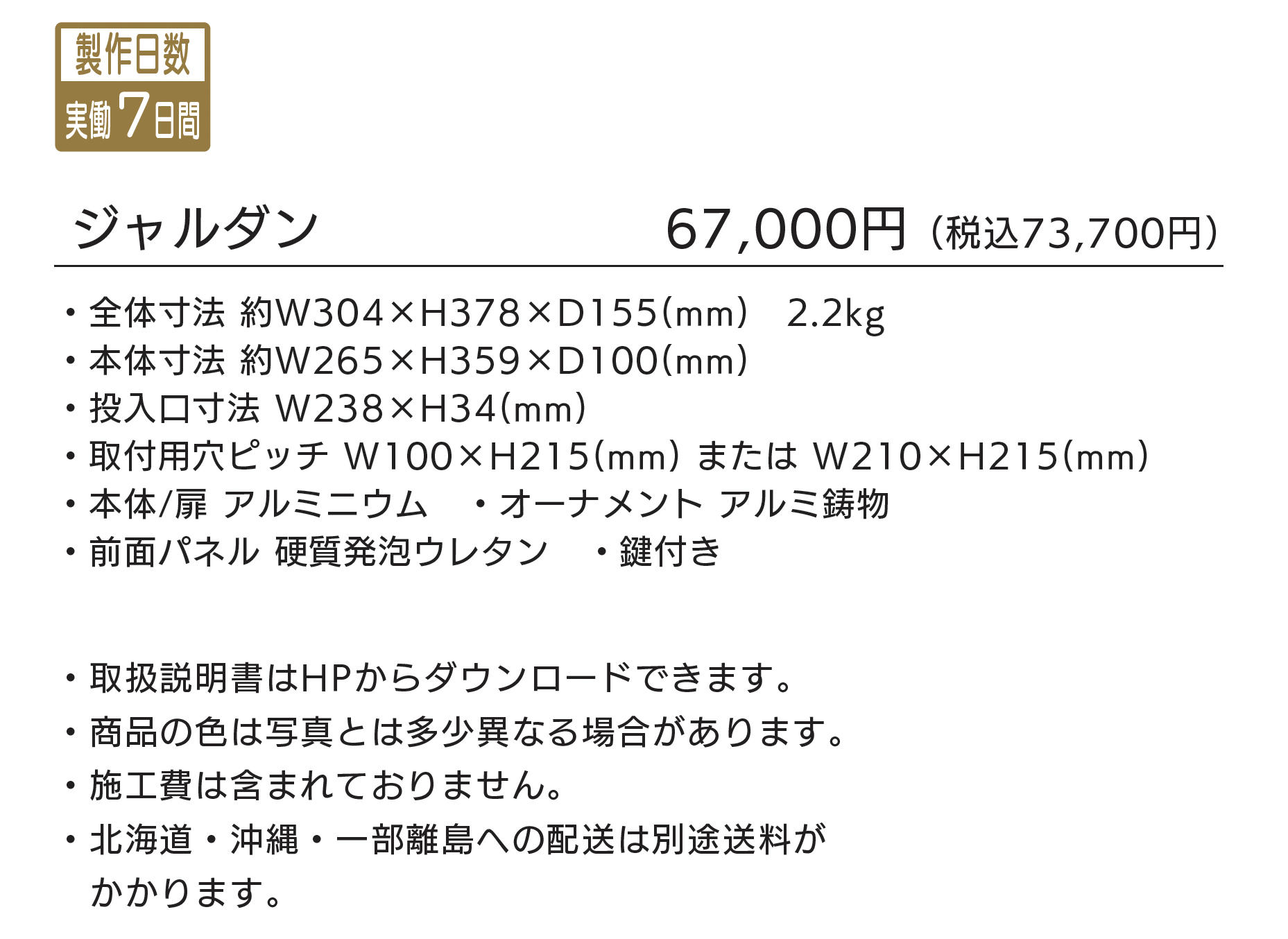 | 新旧品 | ジャルダン【2025年版】(表札総合カタログWELNA Vol.23)ジャルダン【2024年版】(表札総合カタログWELNA Vol.22)ジャルダン【2023年版】(表札総合カタログWELNA Vol.21) |