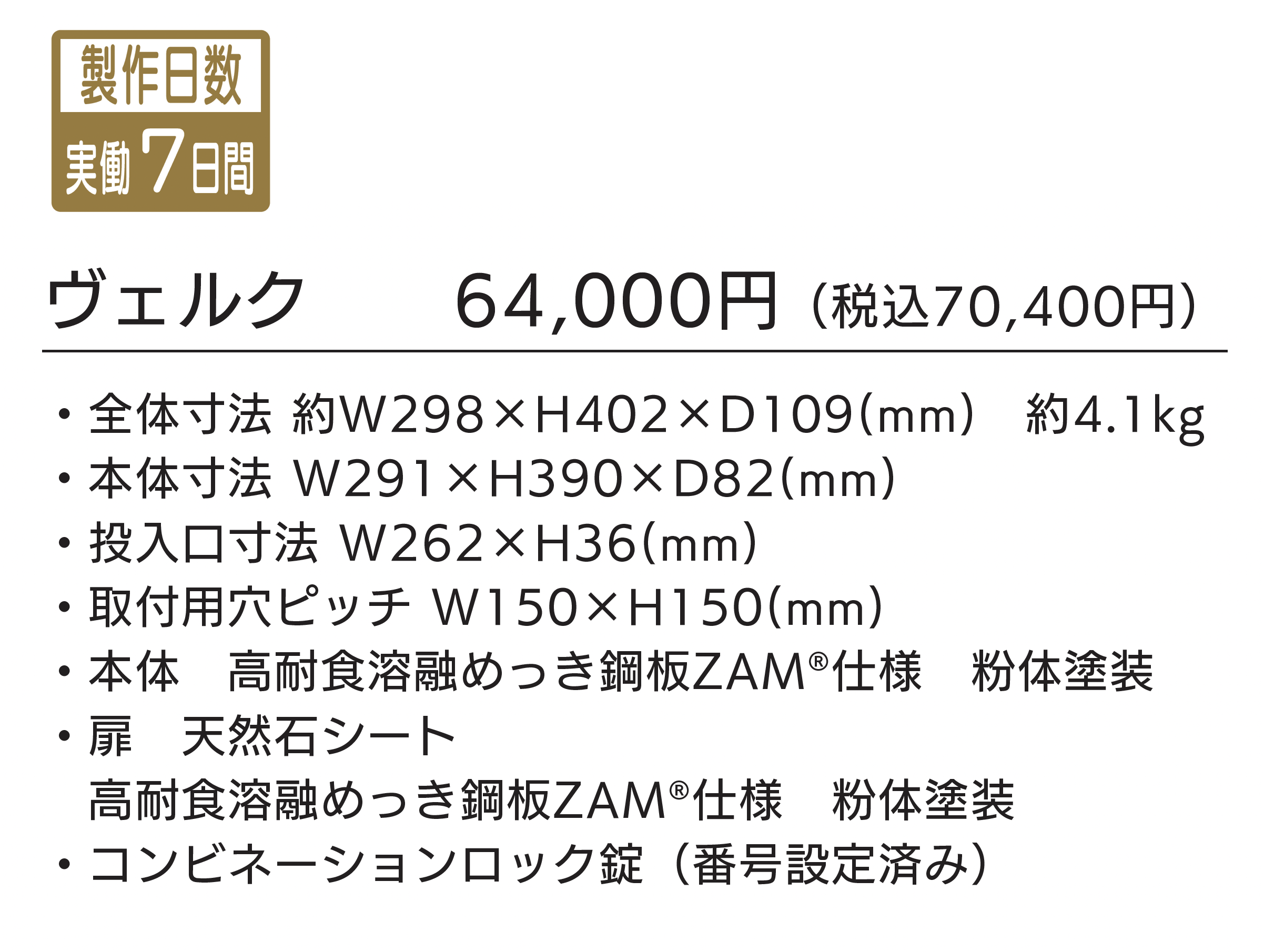 | 材質 | 天然石シート 高耐食溶融めっき鋼板ZAM®︎仕様 |