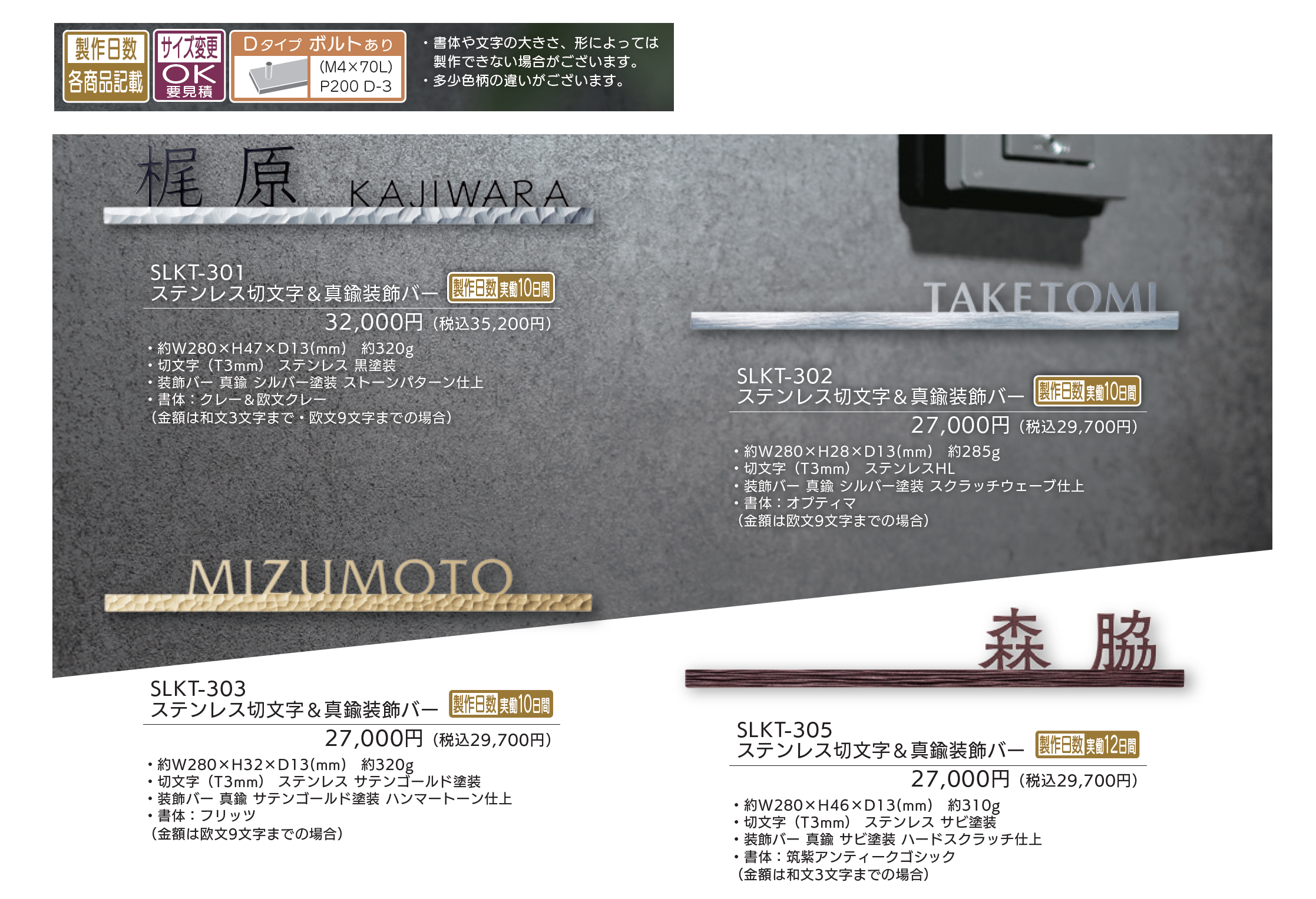 | 材質 | 切文字:ステンレス装飾バー:真鍮 |
