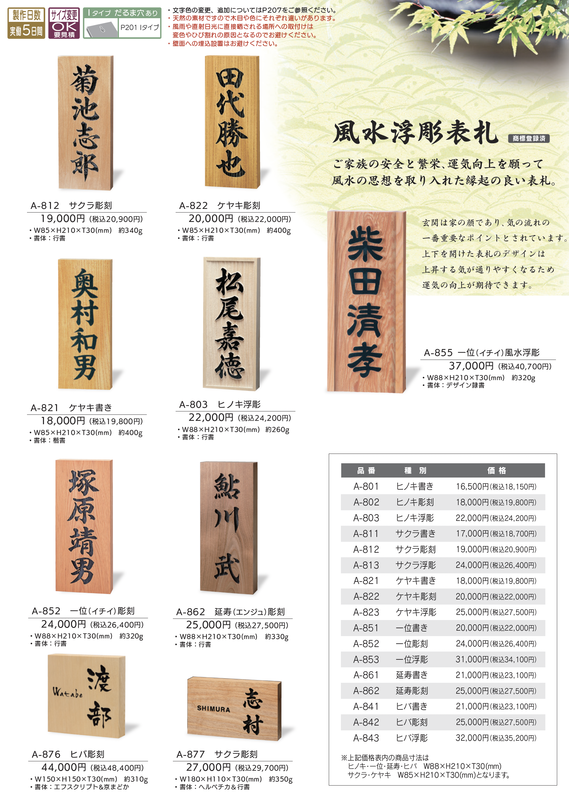 | 新旧品 | 銘木表札【2025年版】(表札総合カタログWELNA Vol.23)銘木表札【2024年版】(表札総合カタログWELNA Vol.22)銘木表札【2023年版】(表札総合カタログWELNA Vol.21) |